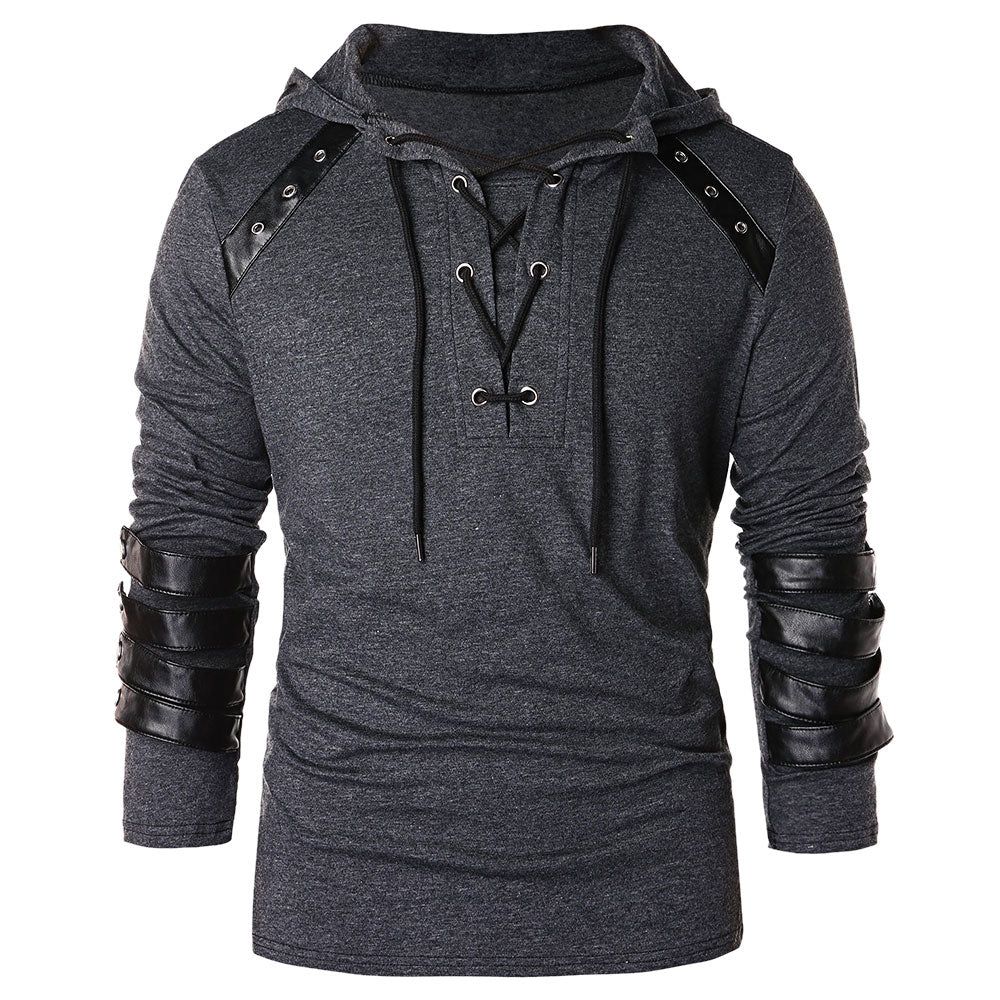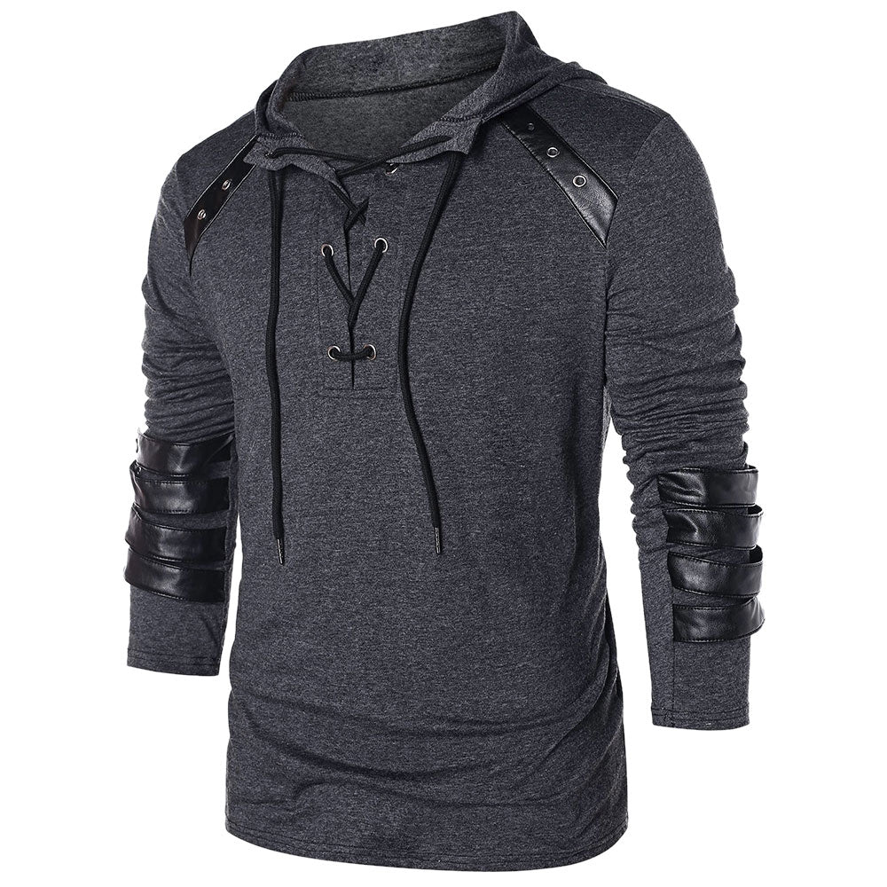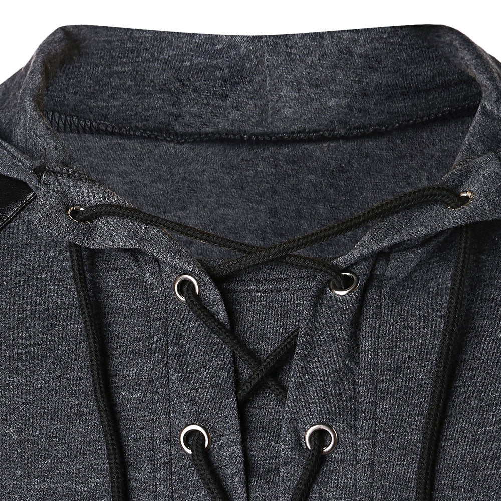 A cool hoodie strikes the perfect balance of comfort and style. Rendered in front lace-up detail and featured with a drawstring neckline and faux leather insert. It is comfy enough to wear on your lazy days and stylish enough to wear out to brunch.