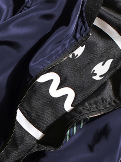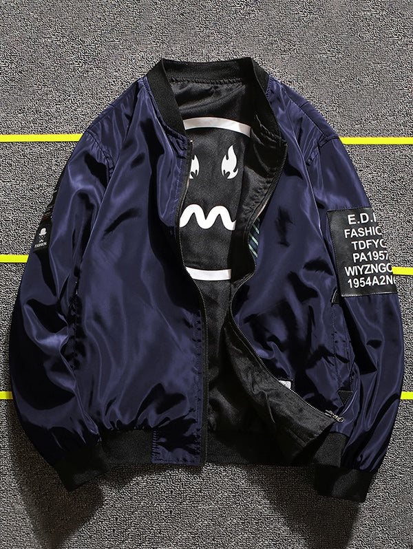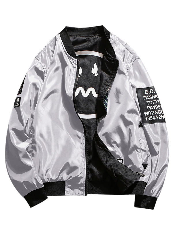 Letter Print Zip Up Baseball Jacket