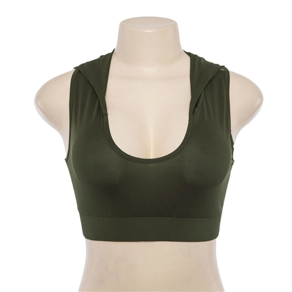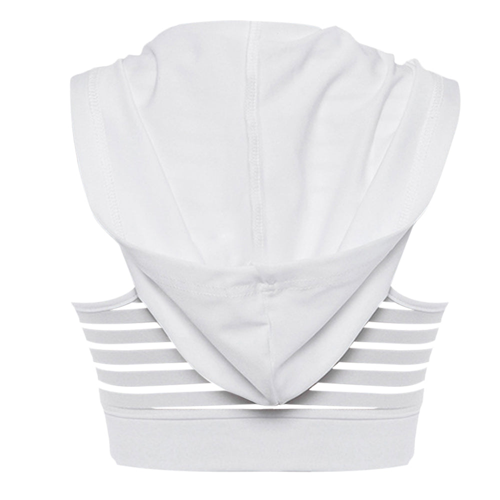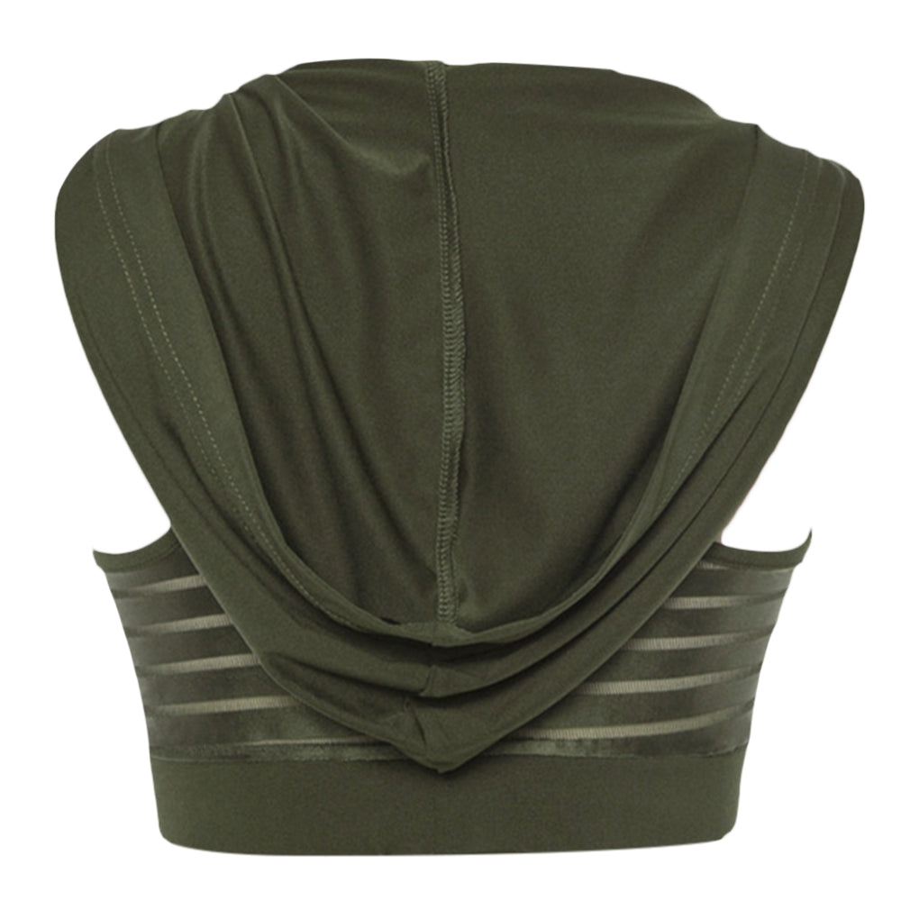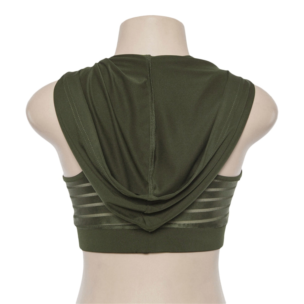U Neck Sleeveless Spliced Mesh Hooded Yoga Sports Bralette Women Crop Top