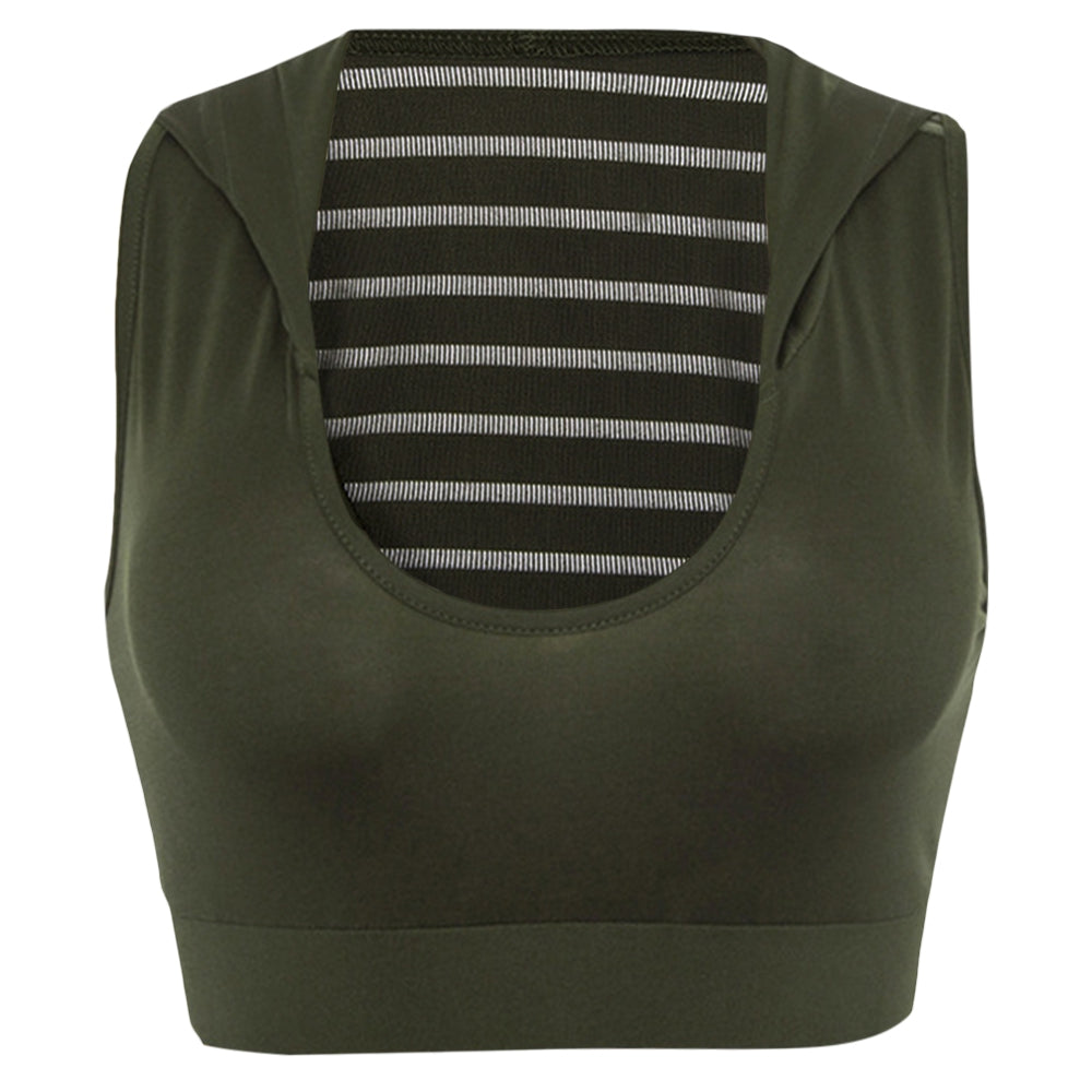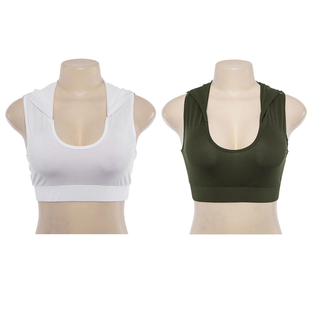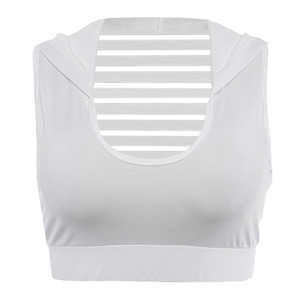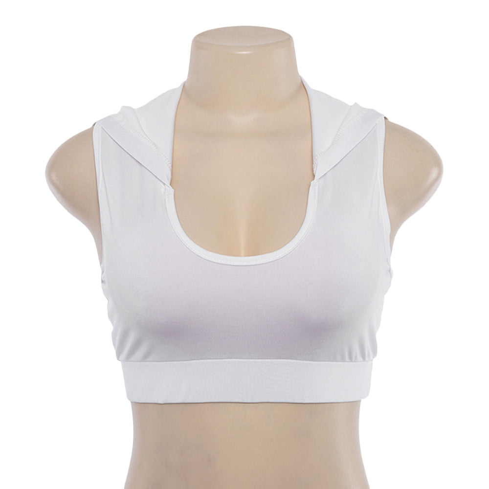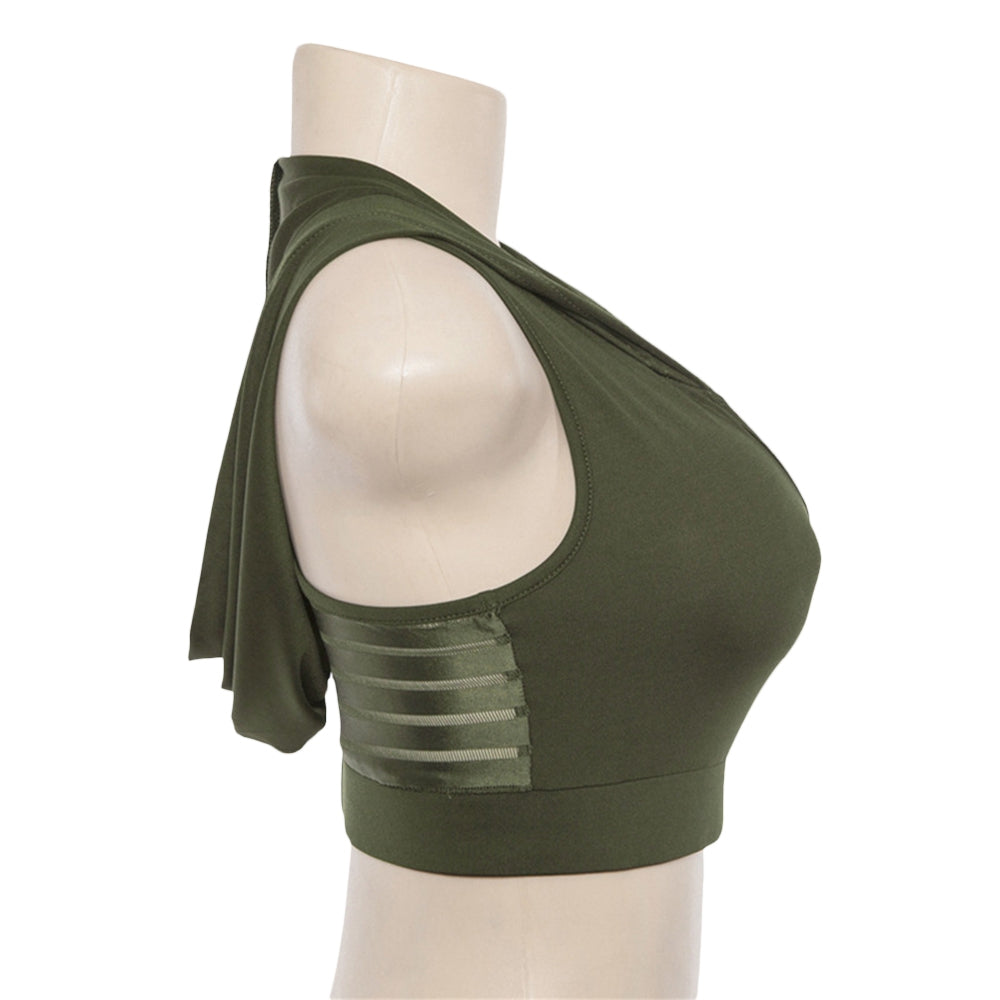 U Neck Sleeveless Spliced Mesh Hooded Yoga Sports Bralette Women Crop Top