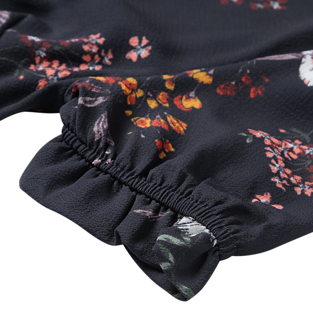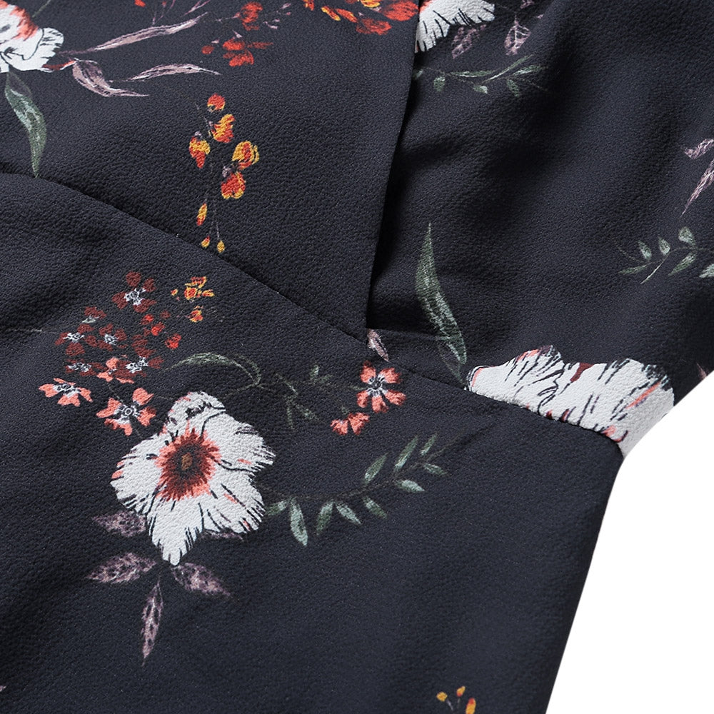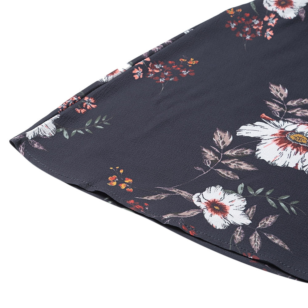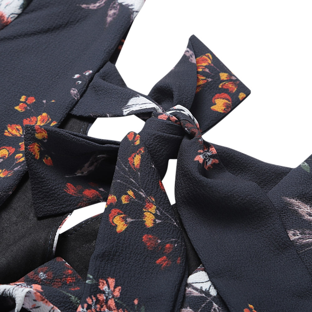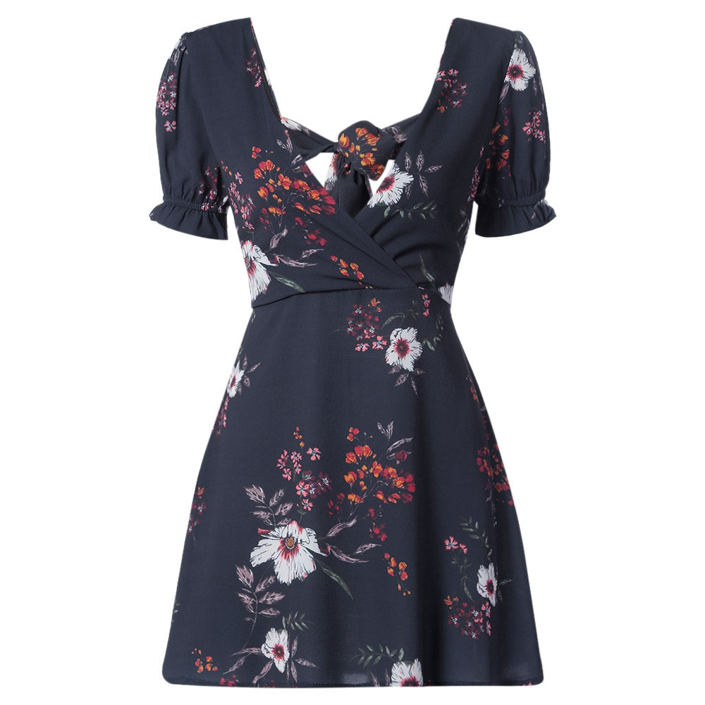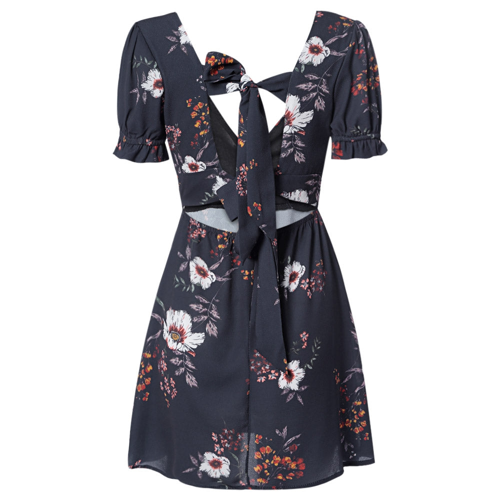 Plunge Neck Short Sleeve Floral Print Backless Tied Strap Women Mini Dress
