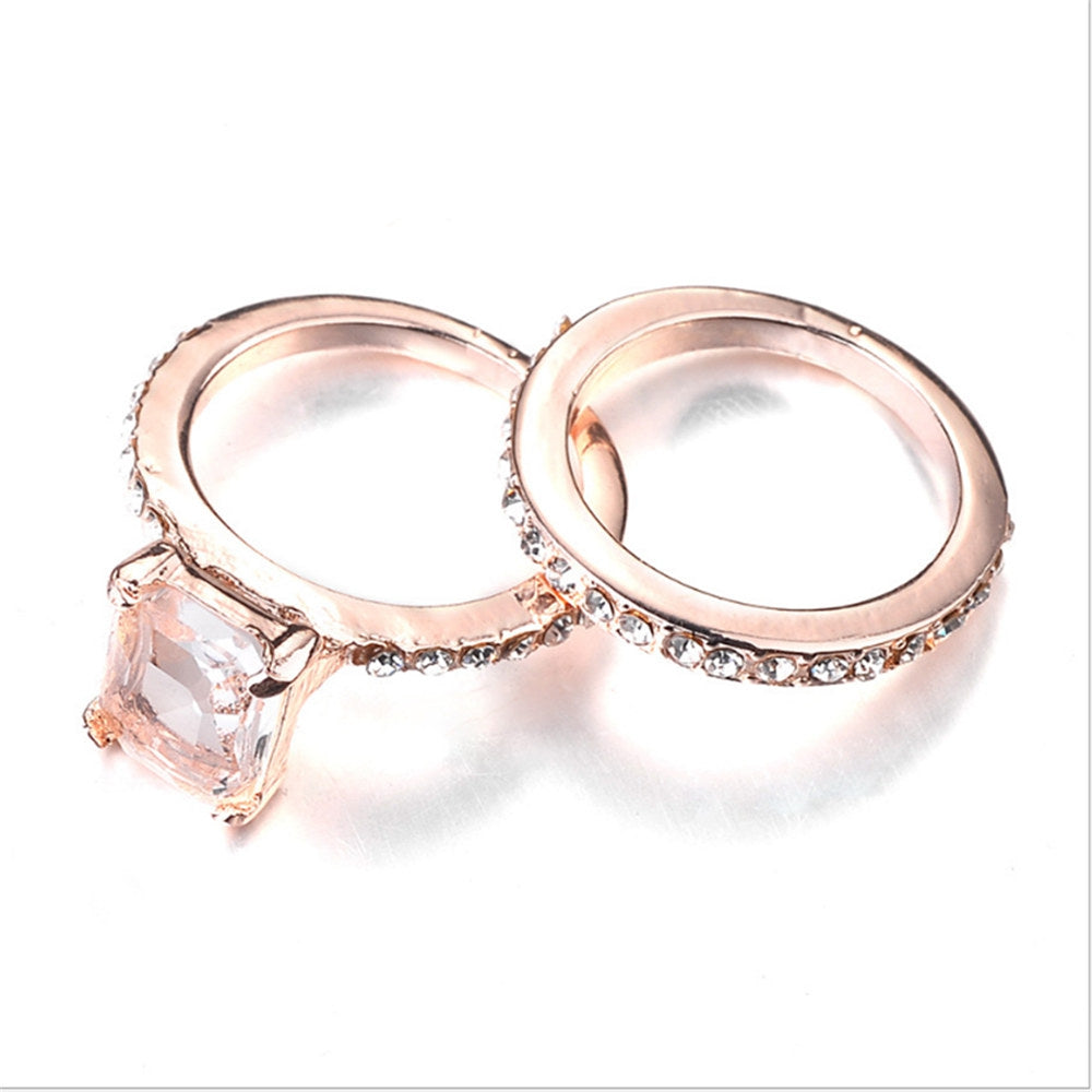 Exquisite 18K Rose Gold Floral Rings New Year Anniversary Proposal Gift Clear