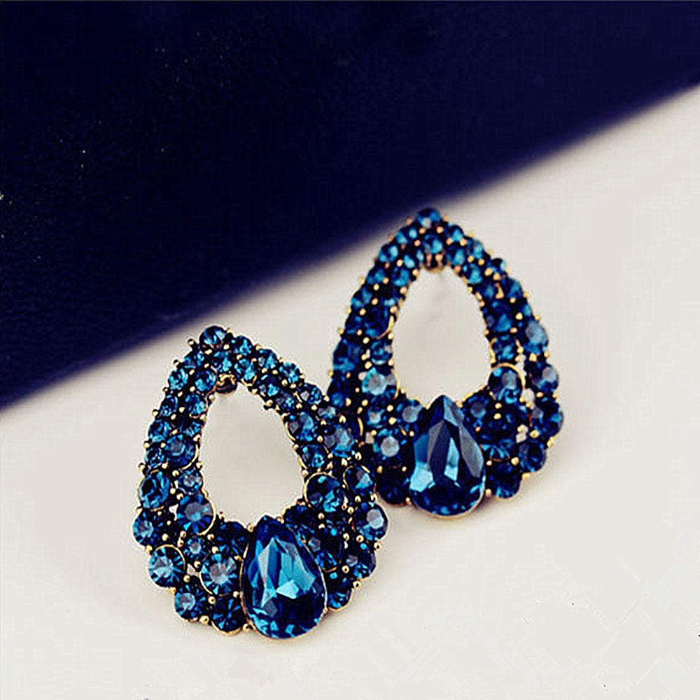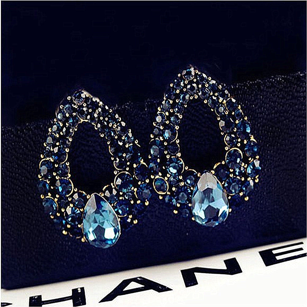 Women Fashion Jewelry Navy Blue Crystal Earrings