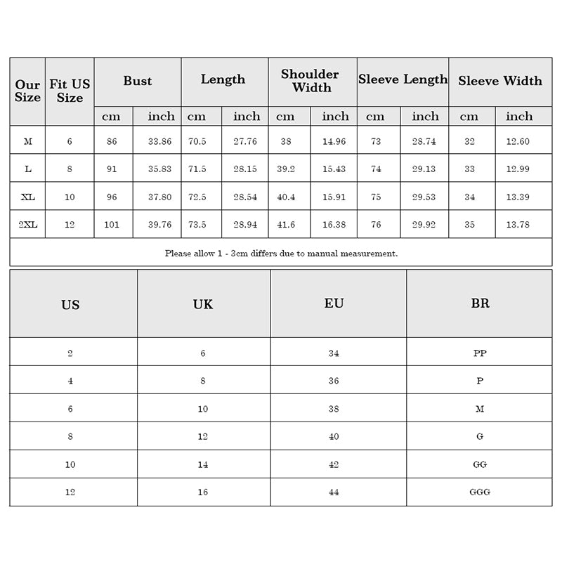 Size Bust Length Shoulder Width Sleeve Length Sleeve Width