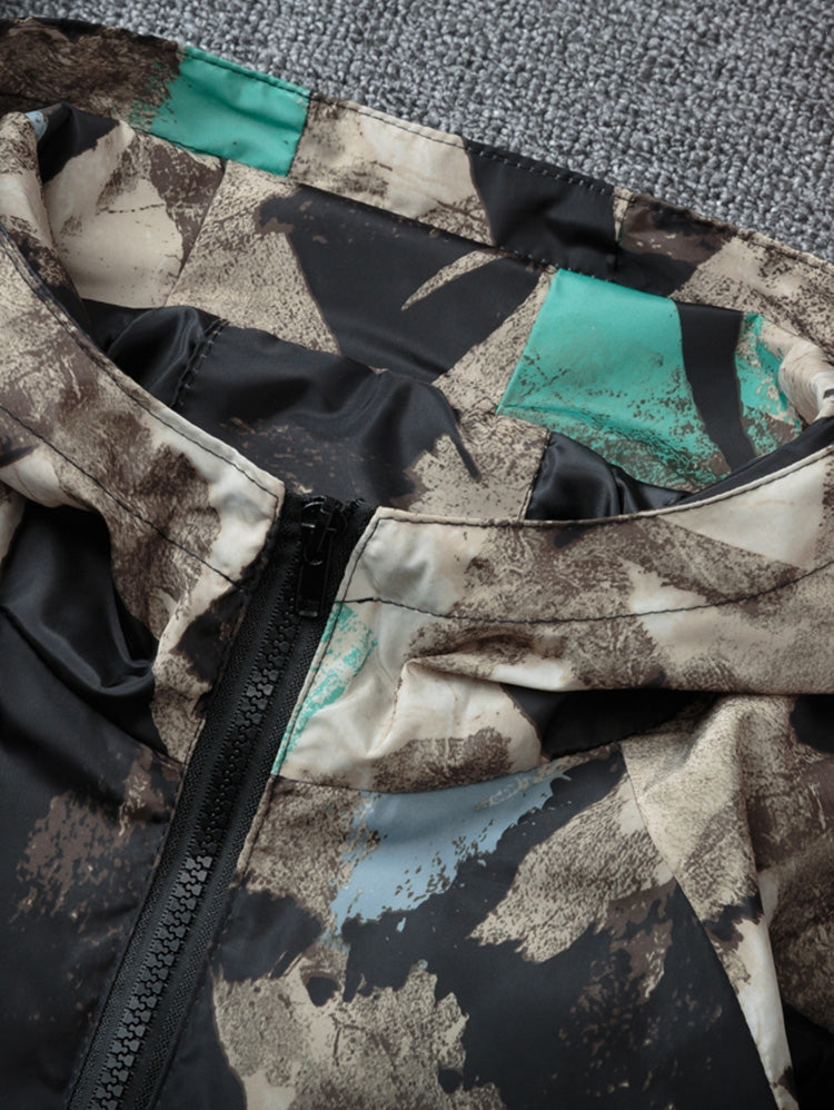 Camo Print Side Pockets Full Zip Waterproof Jacket