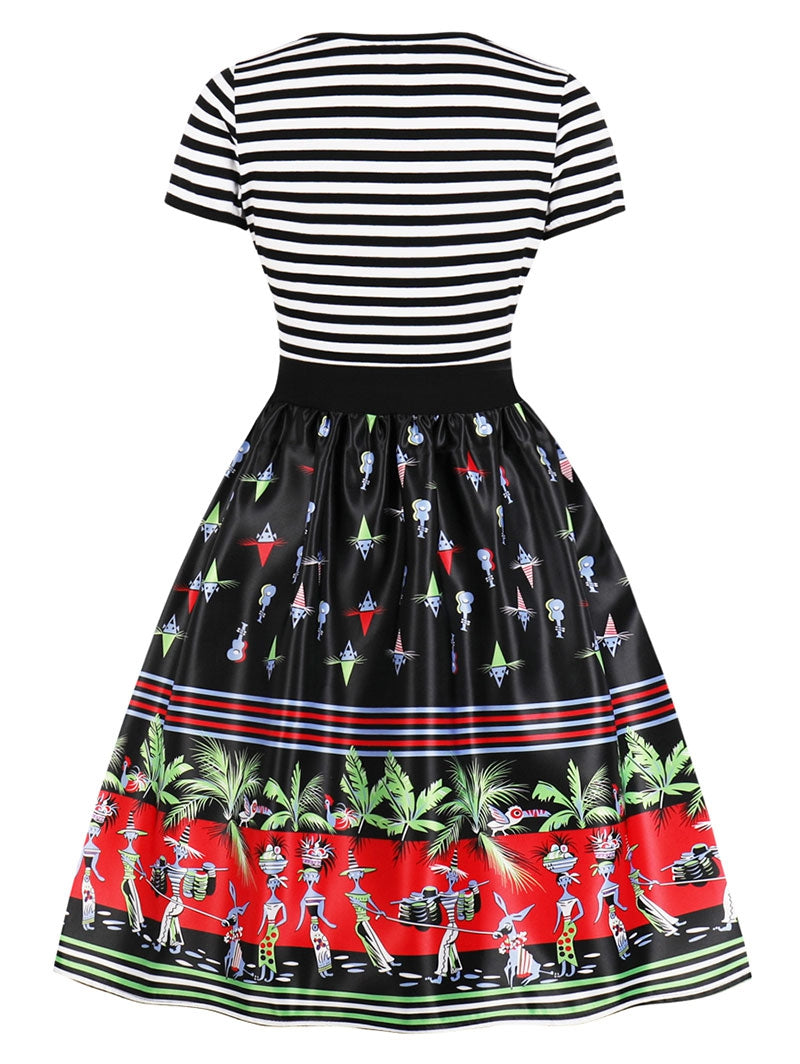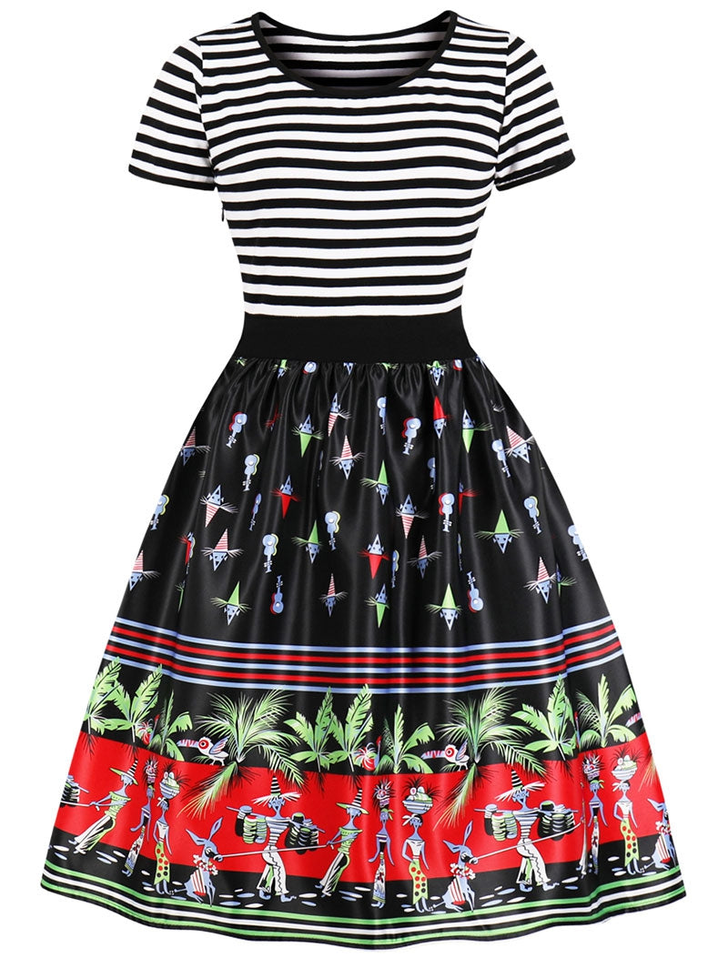 Retro Printed High Waist Pin Up Dress