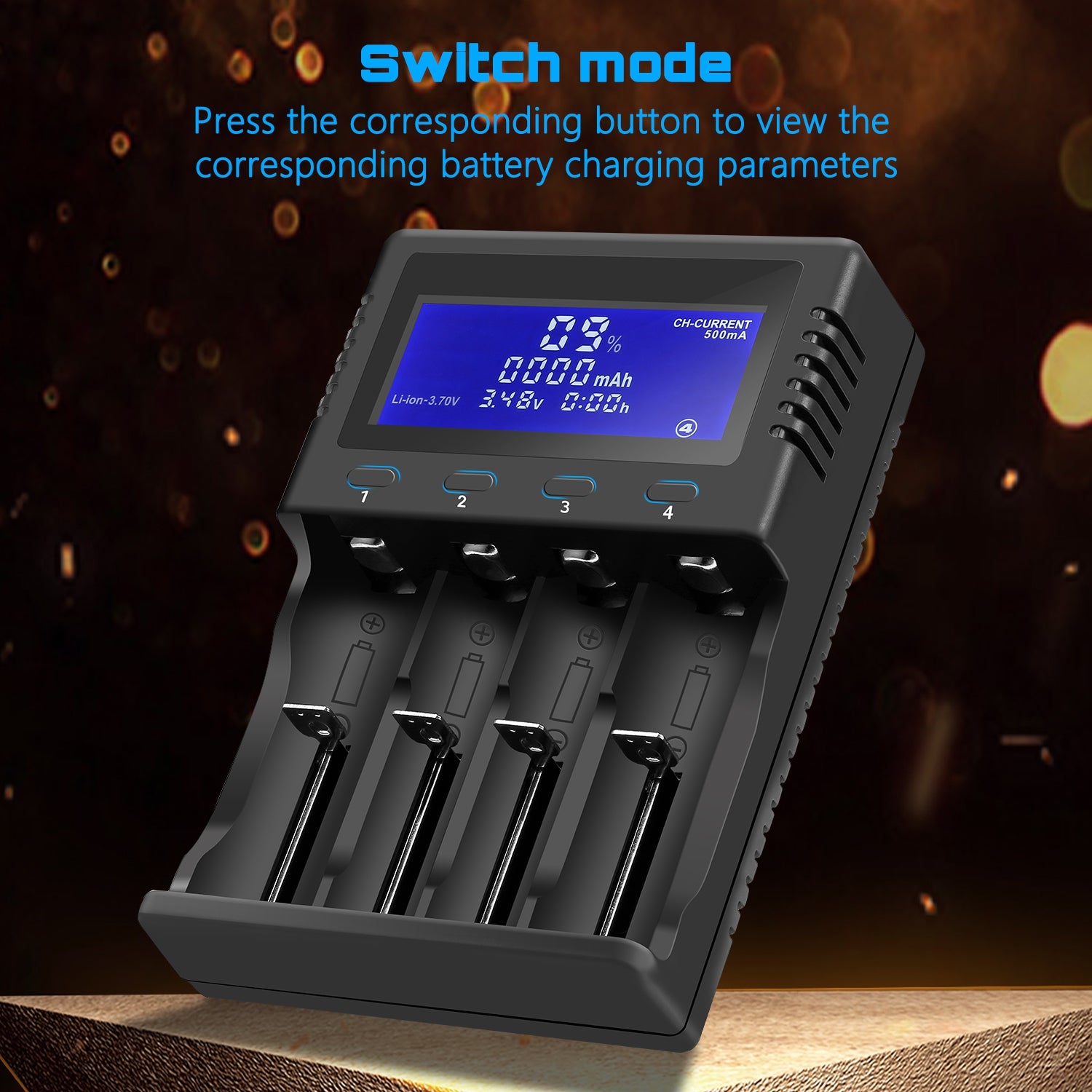 - 4 slots: 3 kinds of charging currents can be selected (500mA/1000mA/2000mA), and 2000mA is designated as the fourth slot