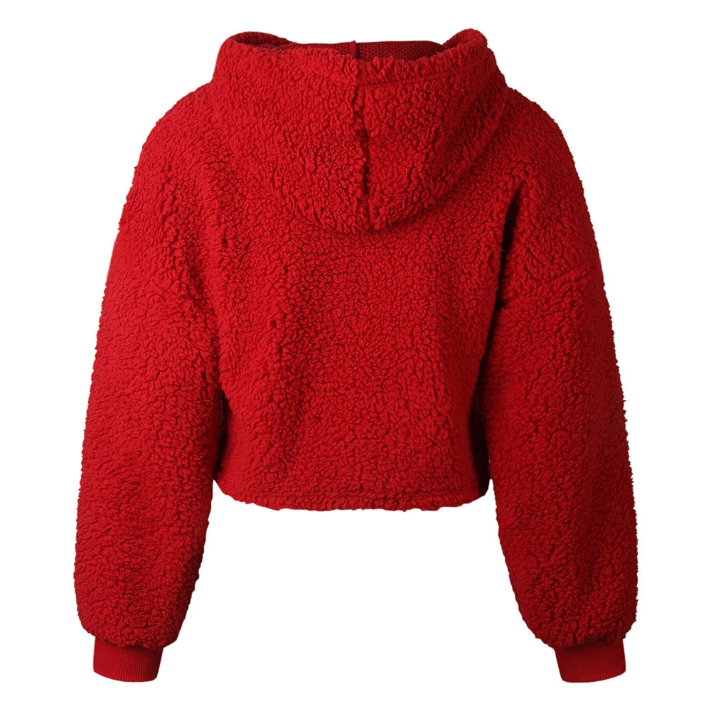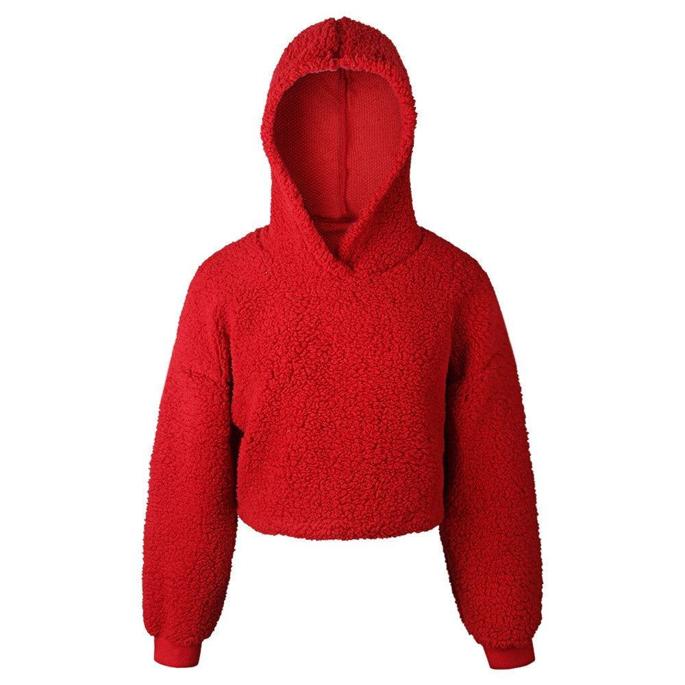 Hooded Long Sleeve Fleece Solid Color Crop Top Women Short Hoodie