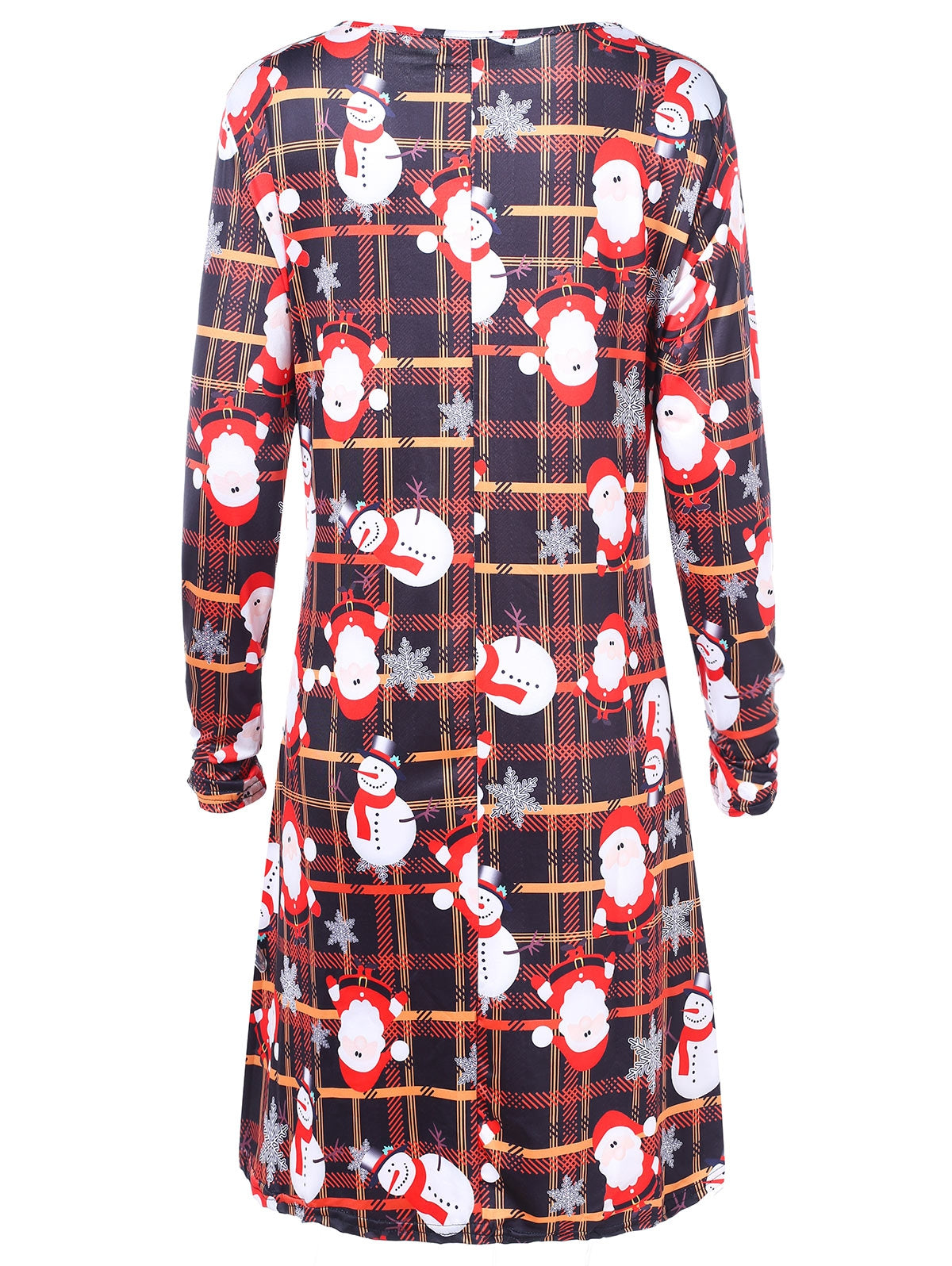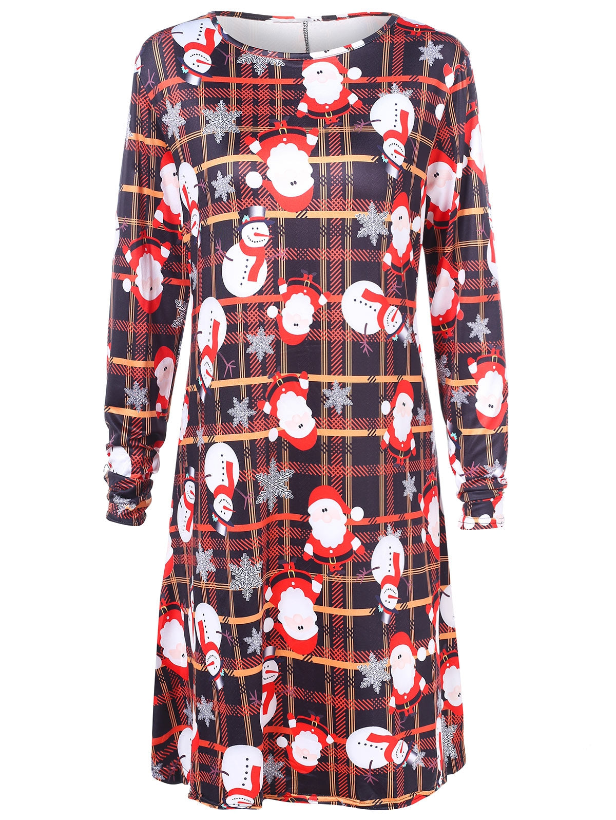 Christmas Plus Size Santa Claus Print Plaid Dress