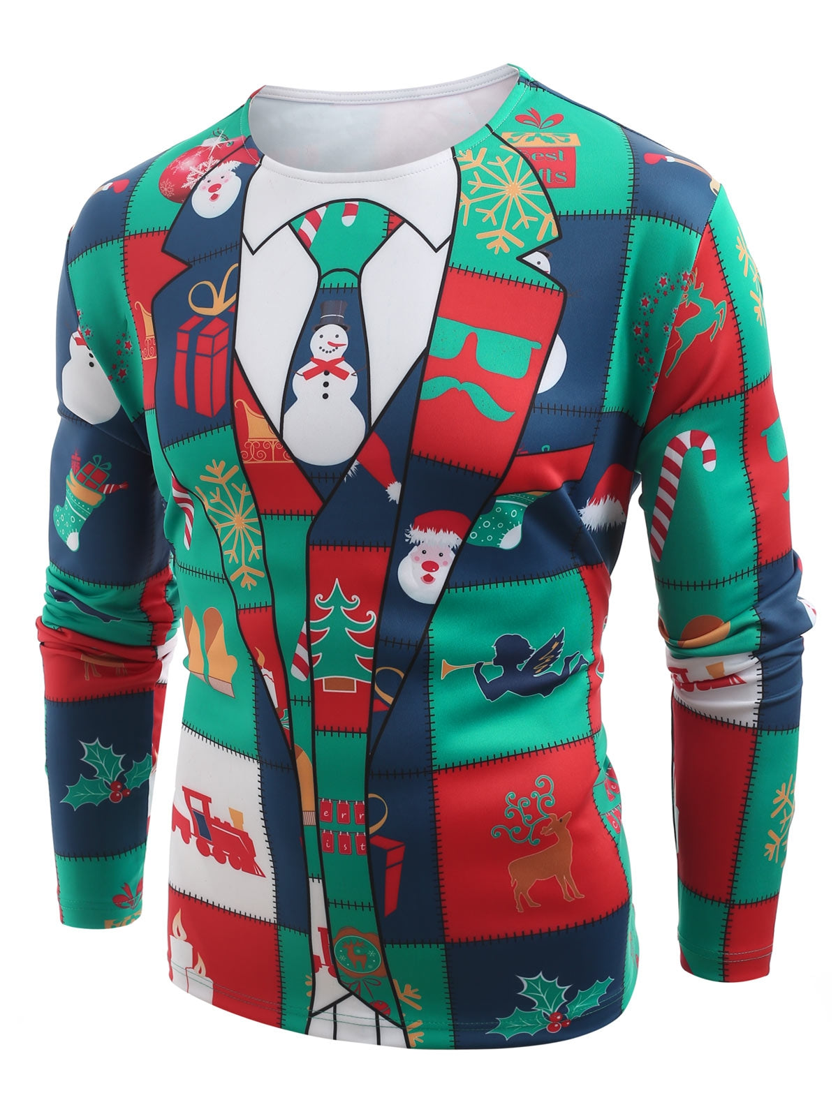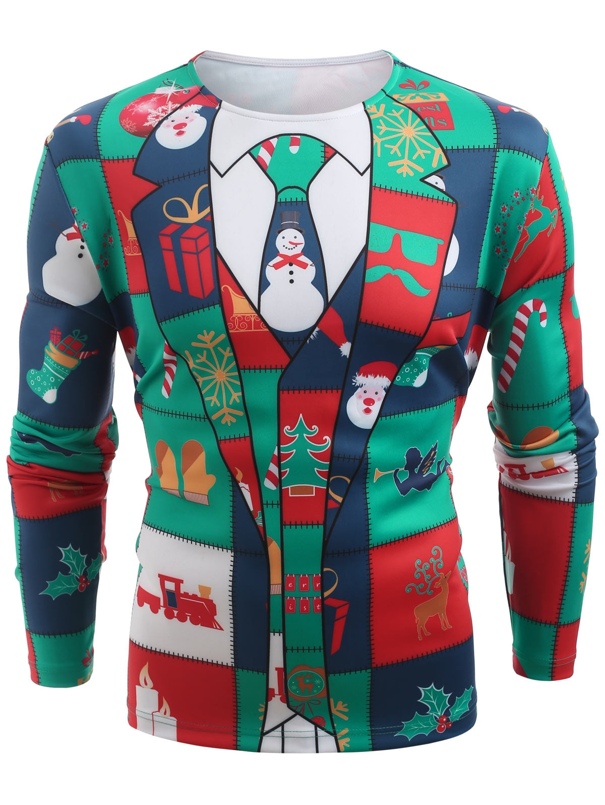 Christmas Elements Blazer Print Long Sleeve T-shirt