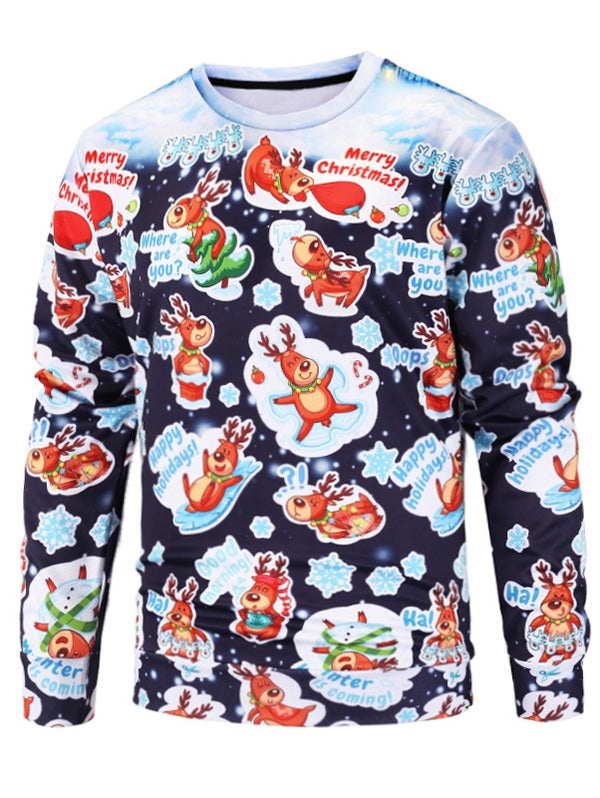 Deer Print Pullover Christmas Sweatshirt