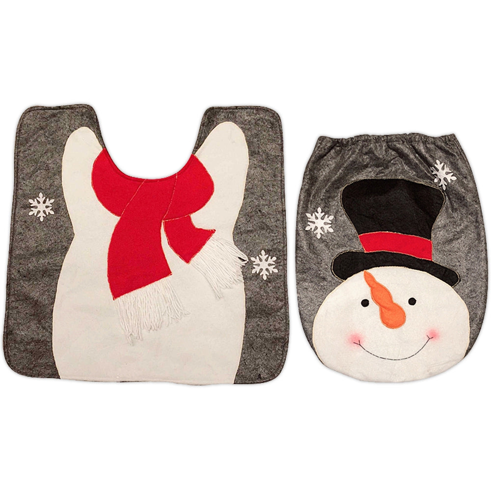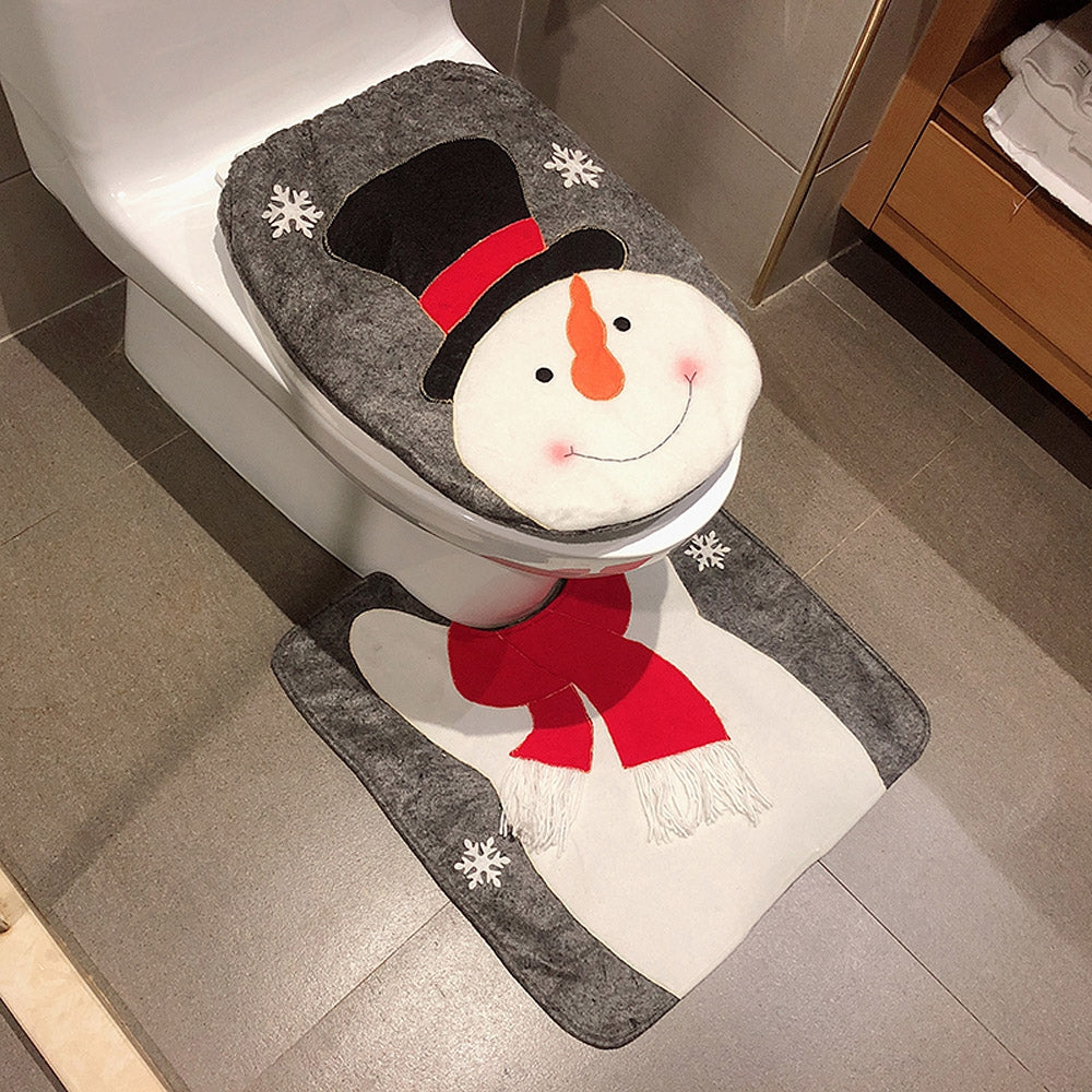 Snowman Toilet Seat Cover Rug Set Christmas Decoration for Home Hotel