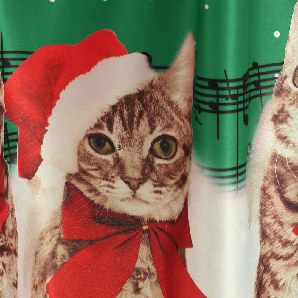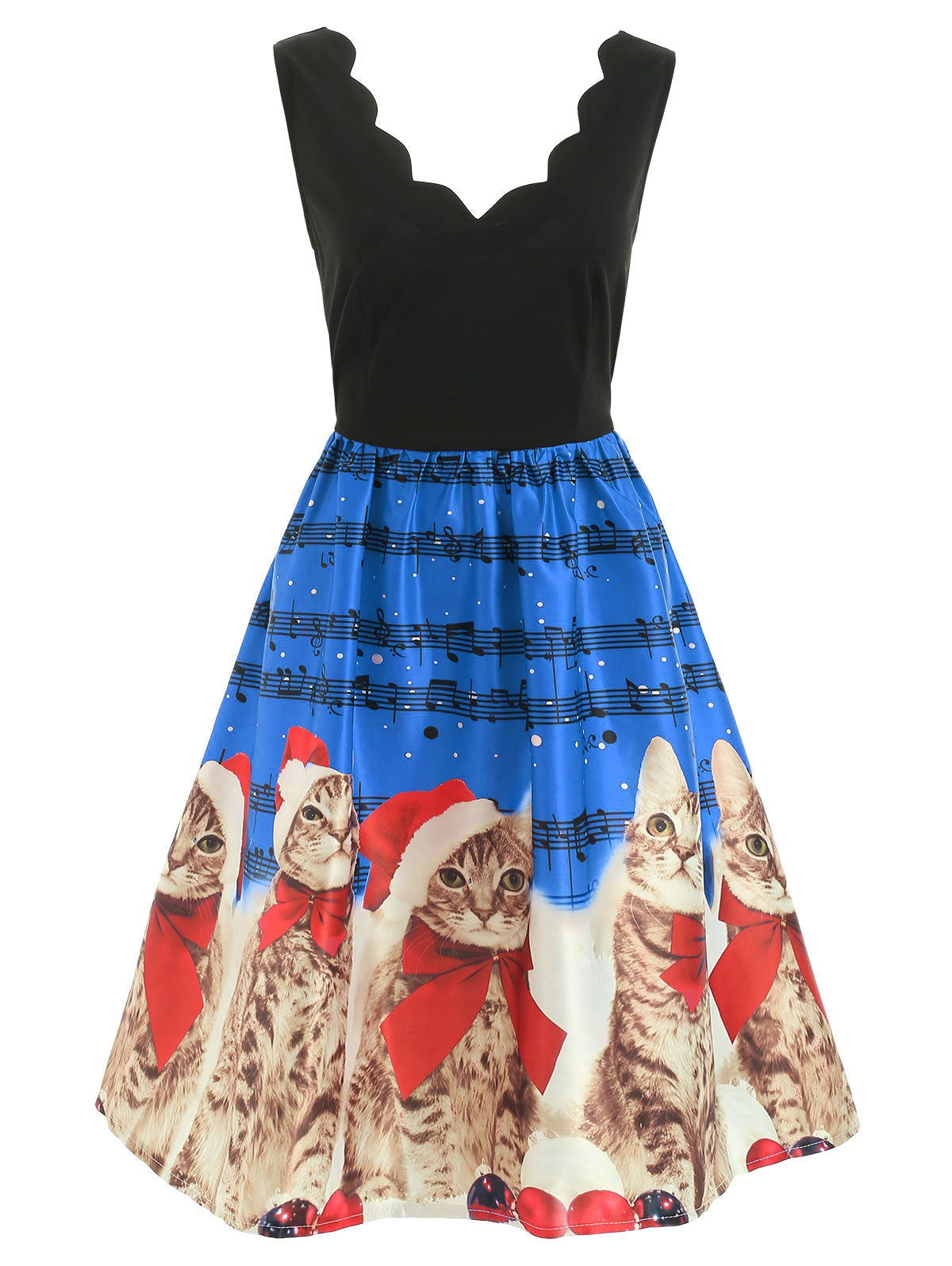 Christmas Cats Musical Notes Print Sleeveless Dress