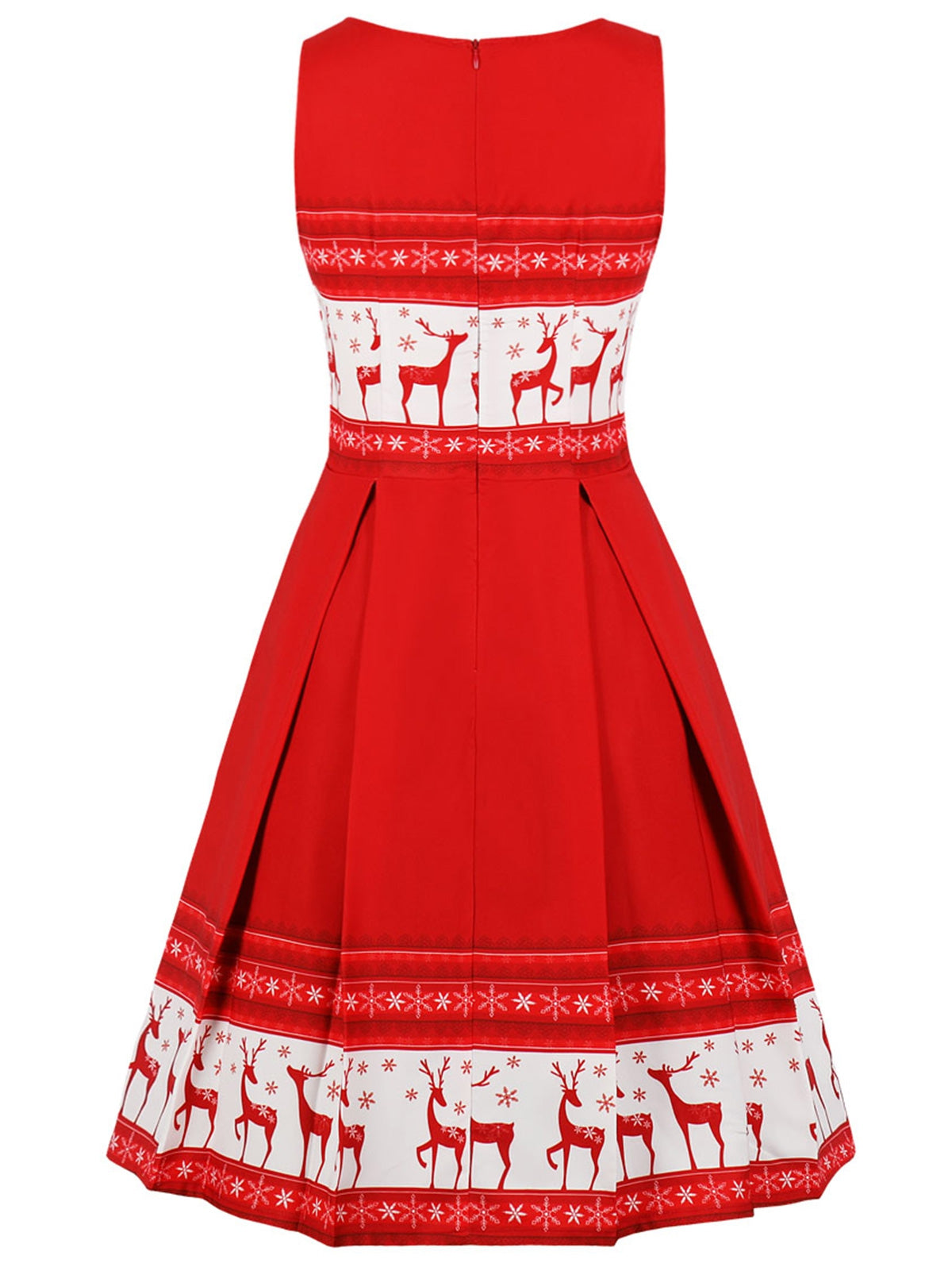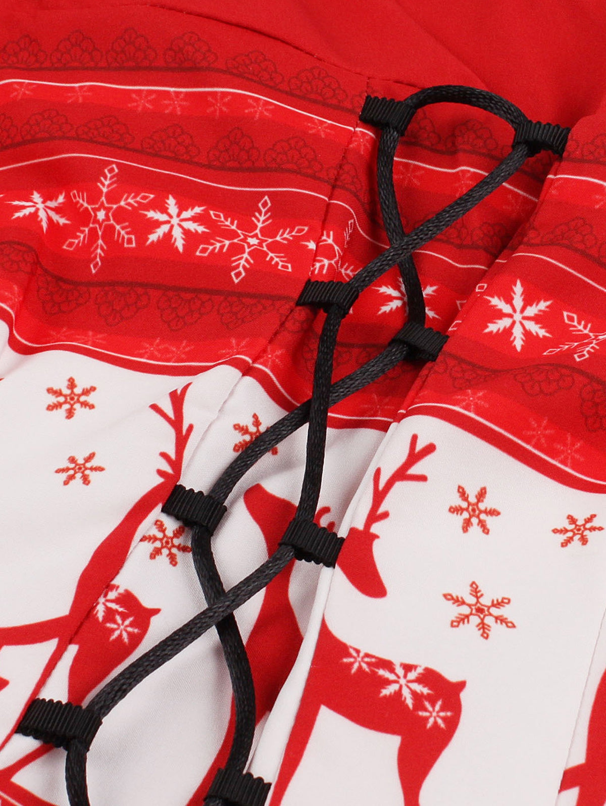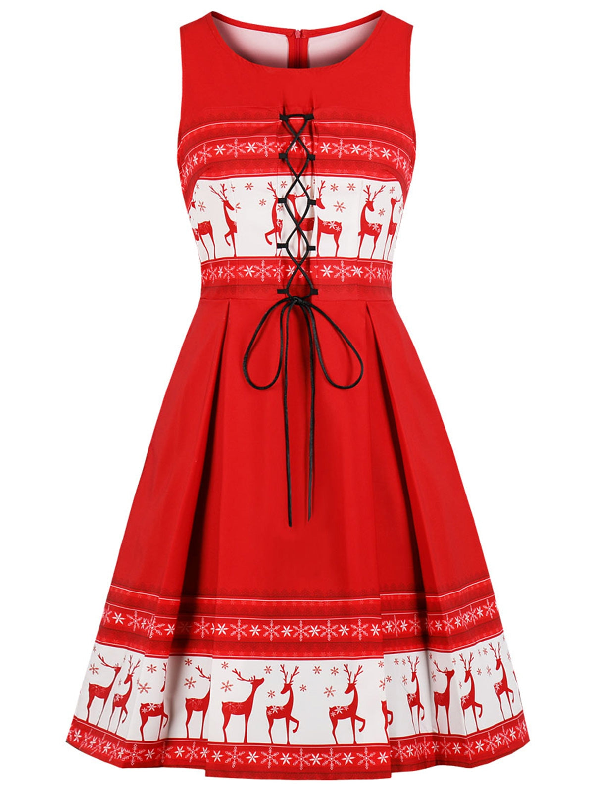 Christmas Vintage Elk Print Lace Up Flare Dress