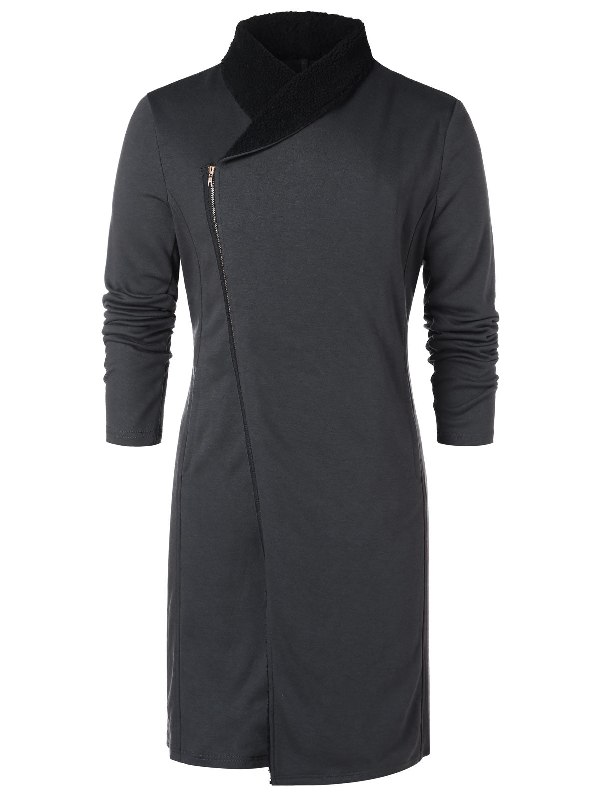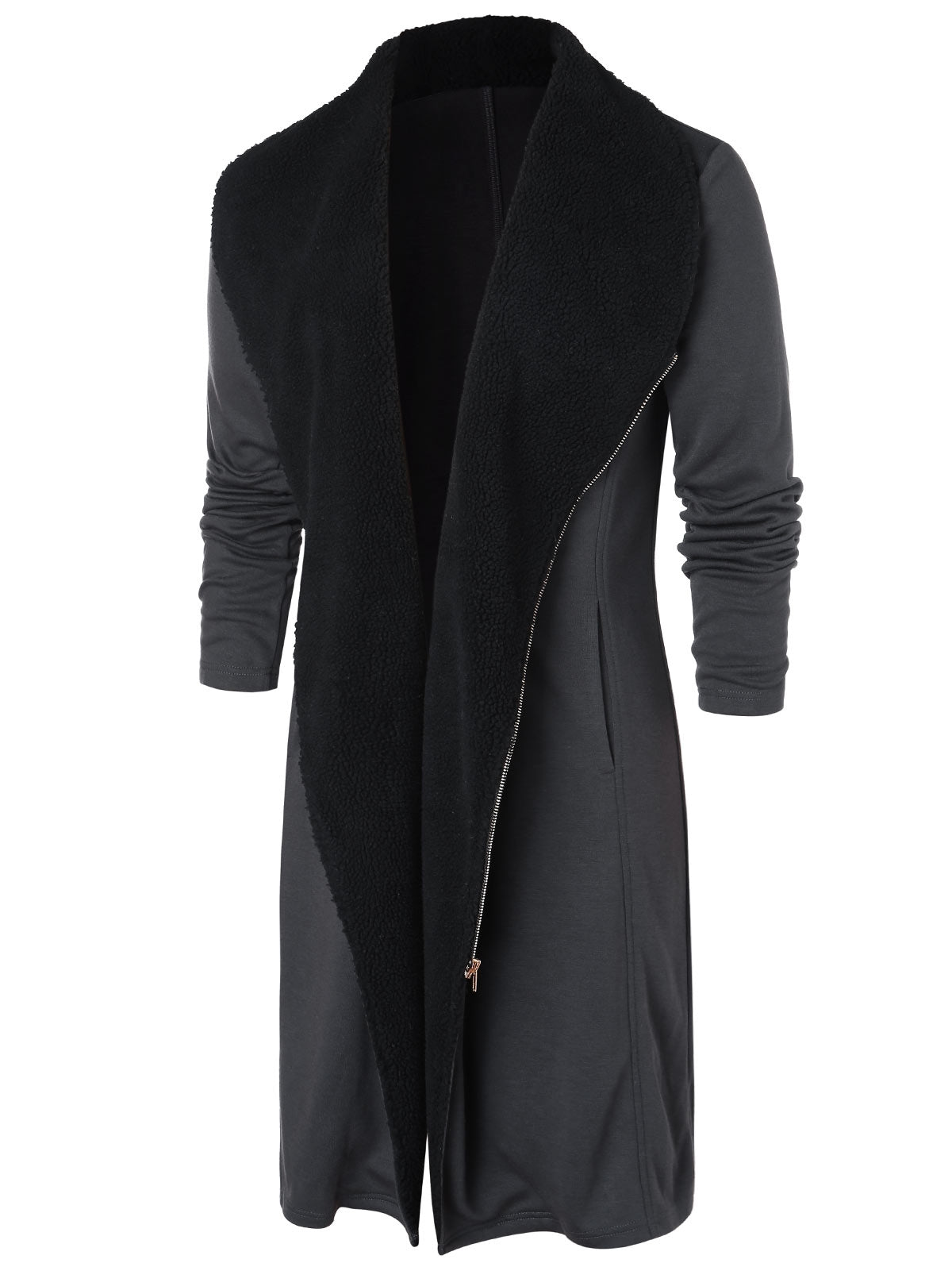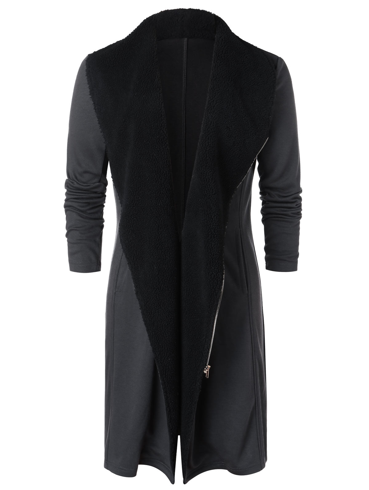 Shawl Collar Zip Up Longline Coat