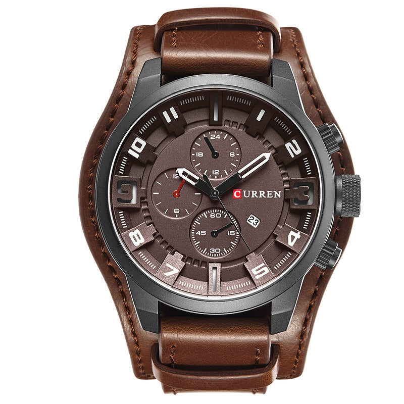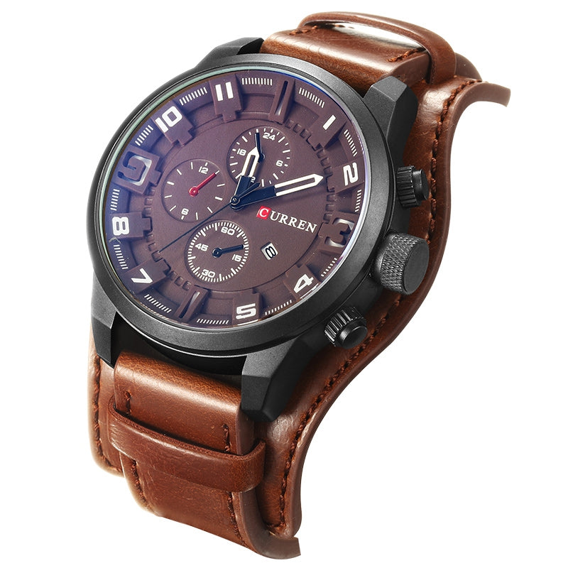 CURREN Men's Casual Quartz Leather Mechanical Pointer Multifunction Watch