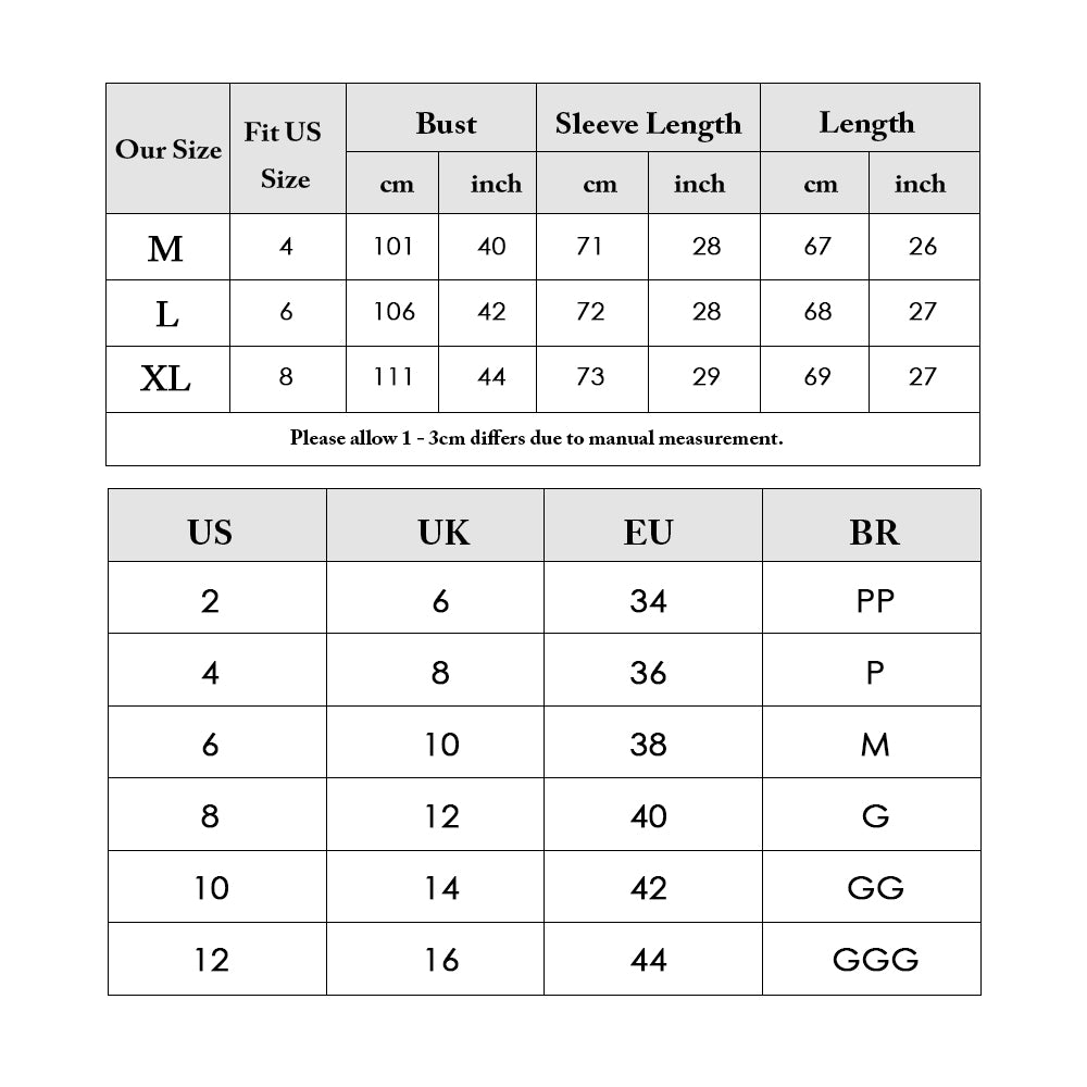 Our Size Bust Length Sleeve Length
