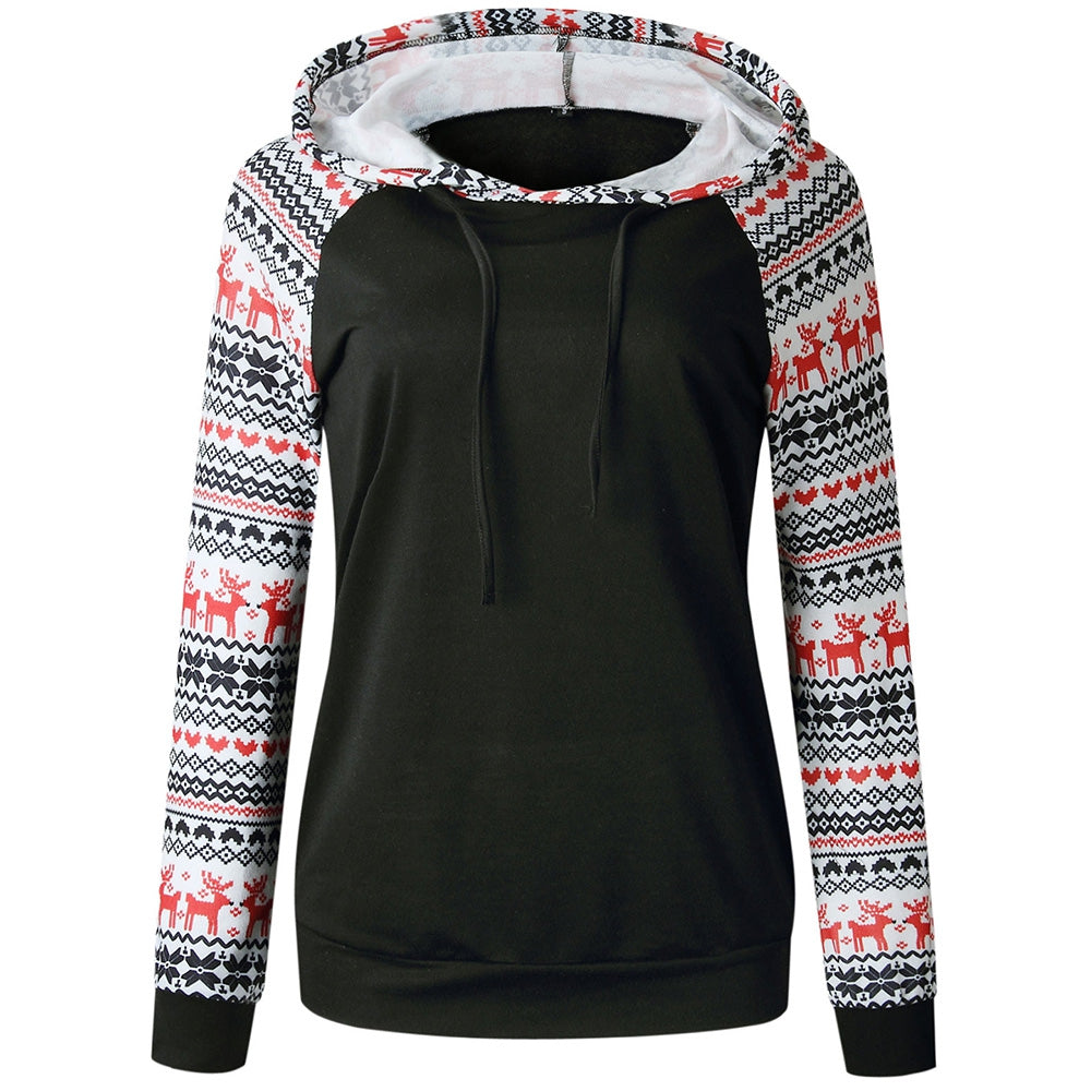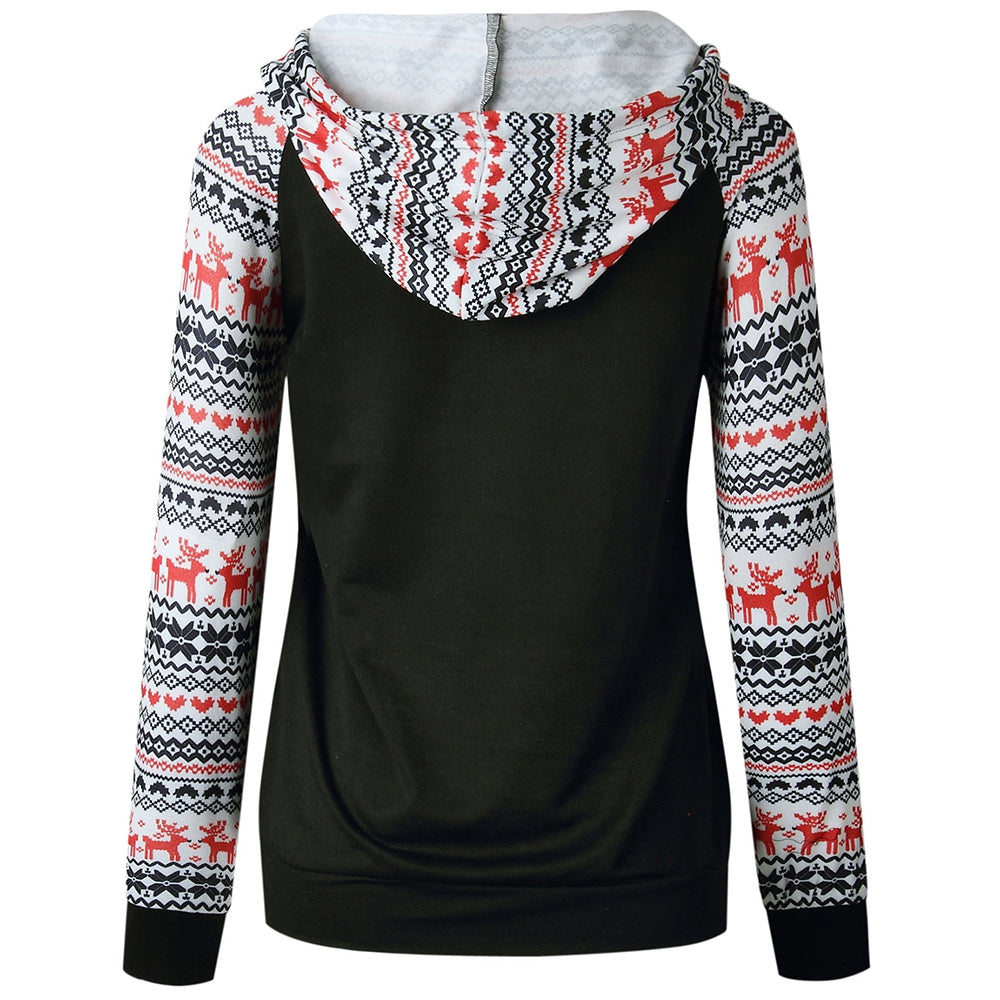 Drawstring Christmas Printed Hoodie