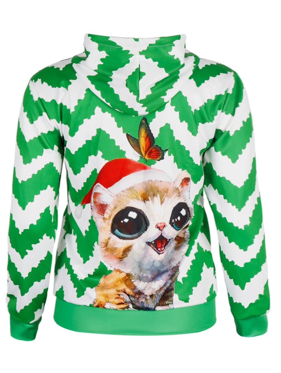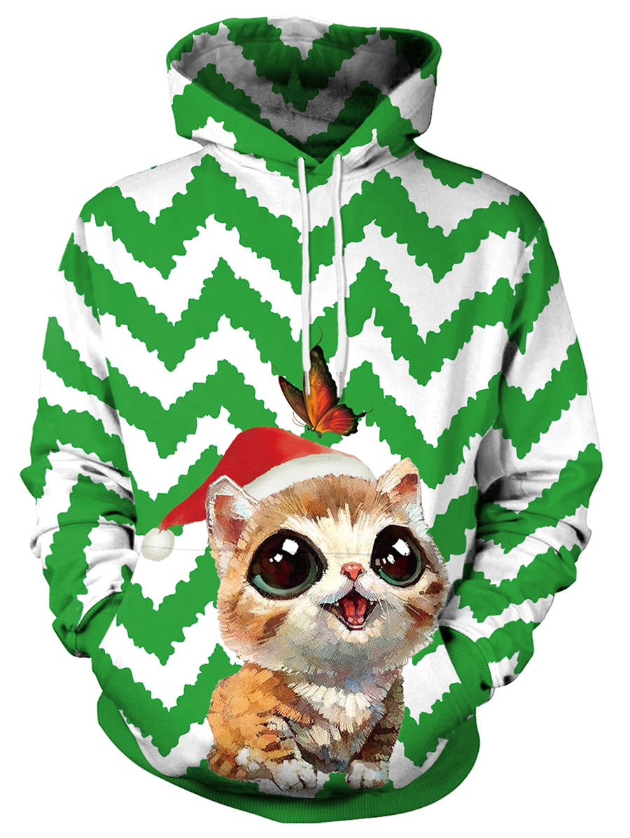 Christmas Cat and Butterfly Print Pullover Hoodie
