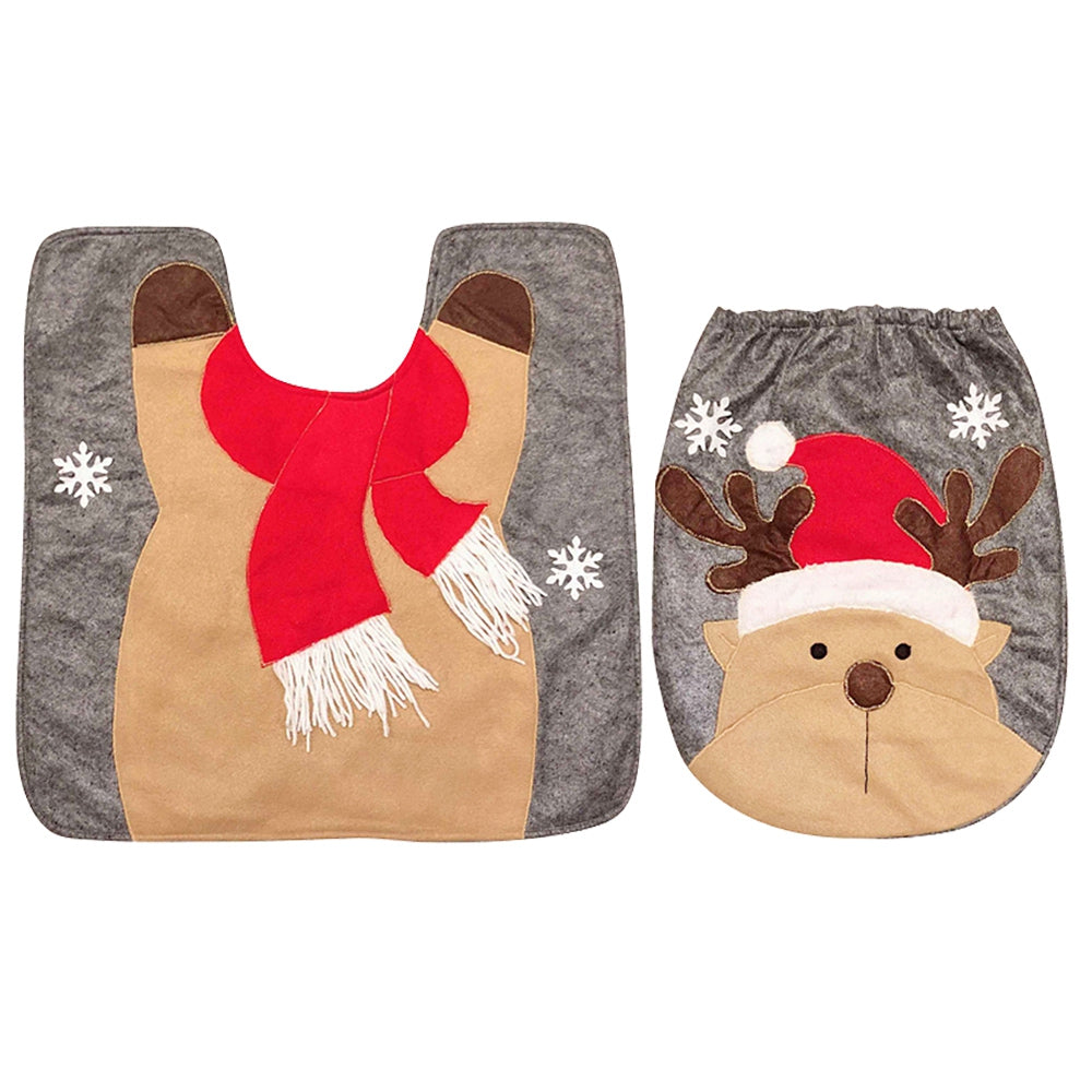 Christmas Toilet Seat Cover Rug Set for Home Hotel Decoration
