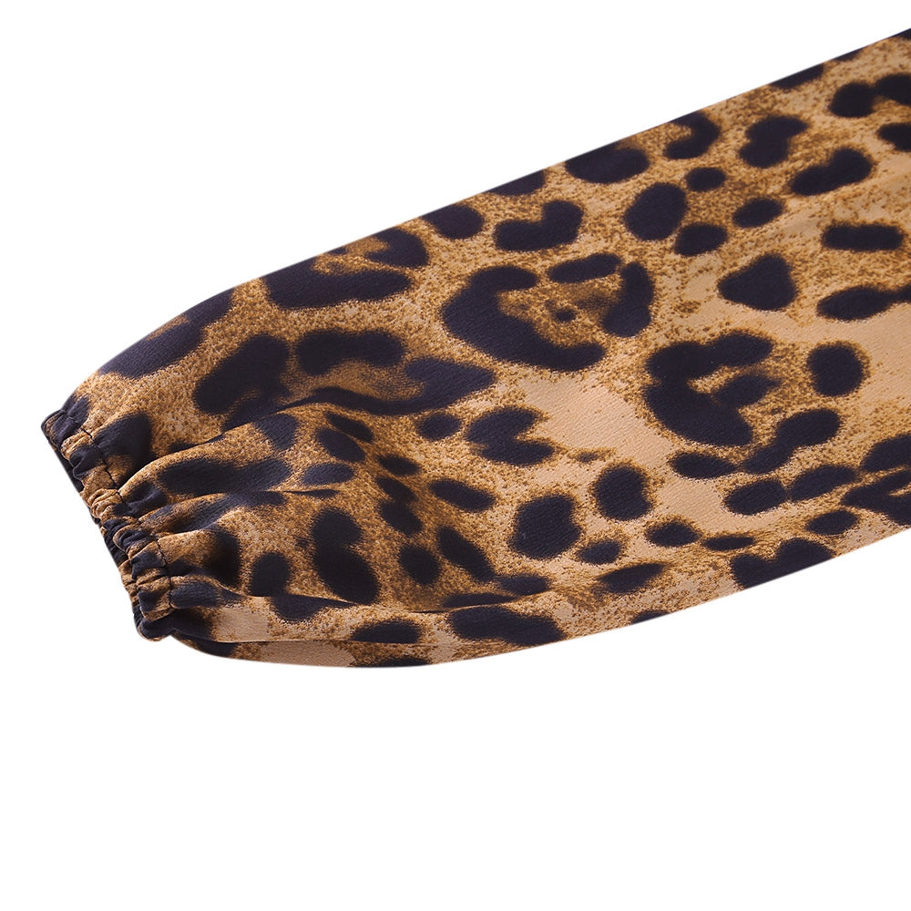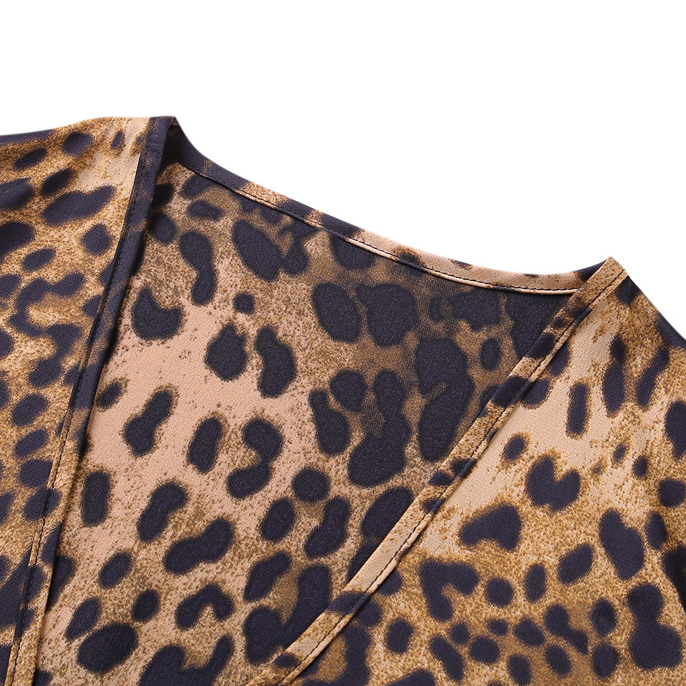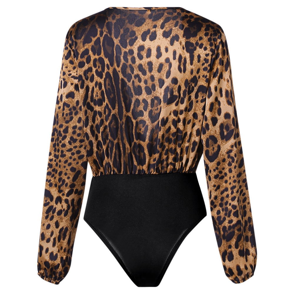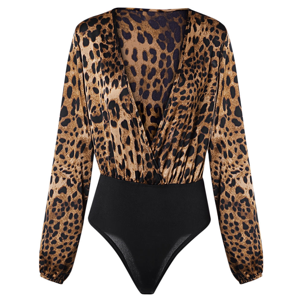 Sexy Jumpsuit Women Long Sleeve Romper V Neck Leopard Print Overall