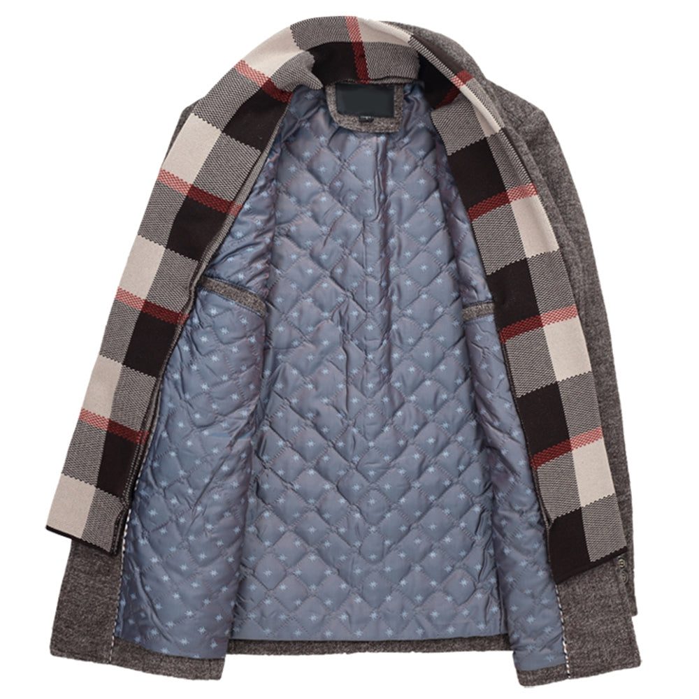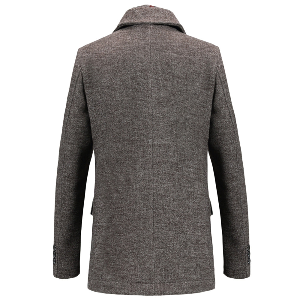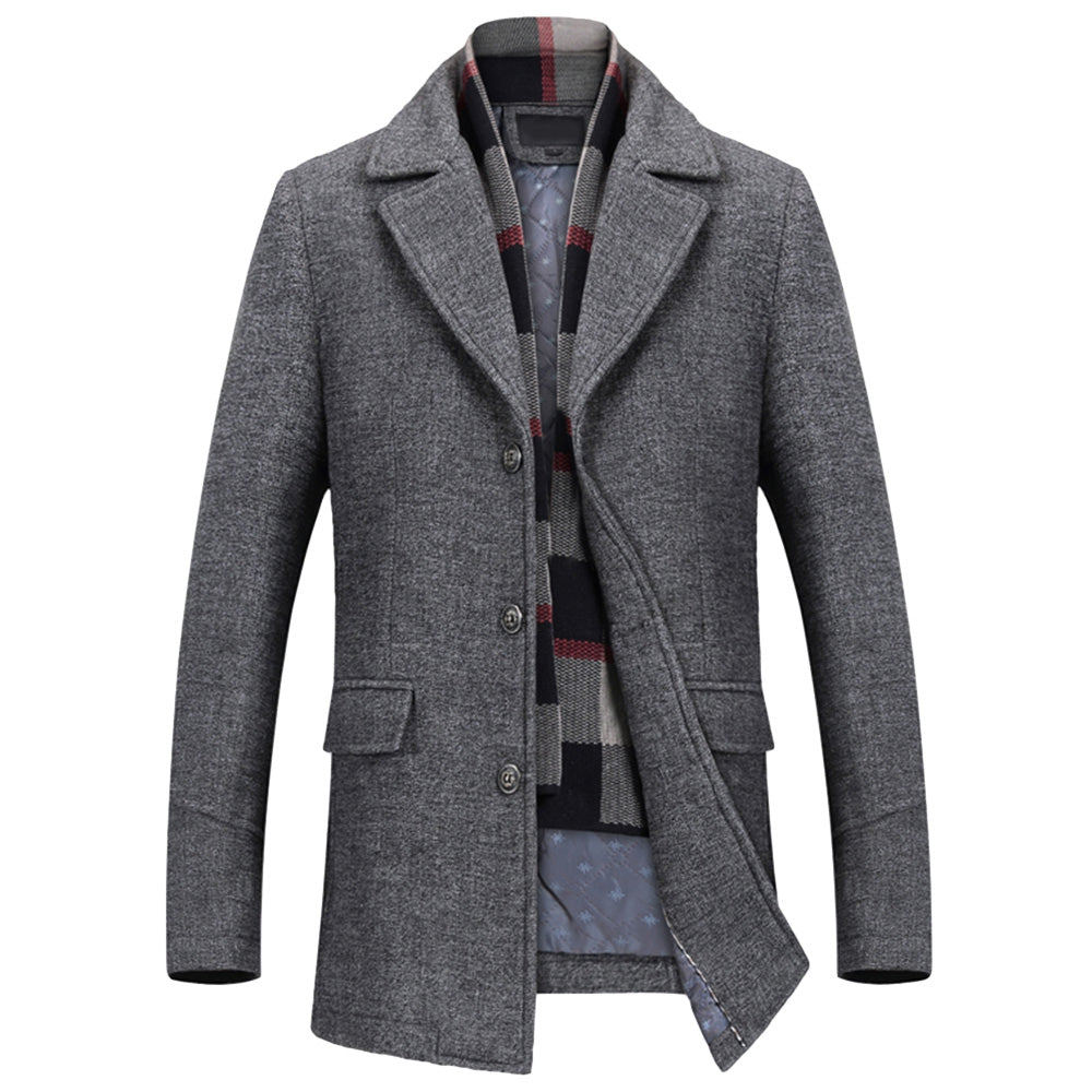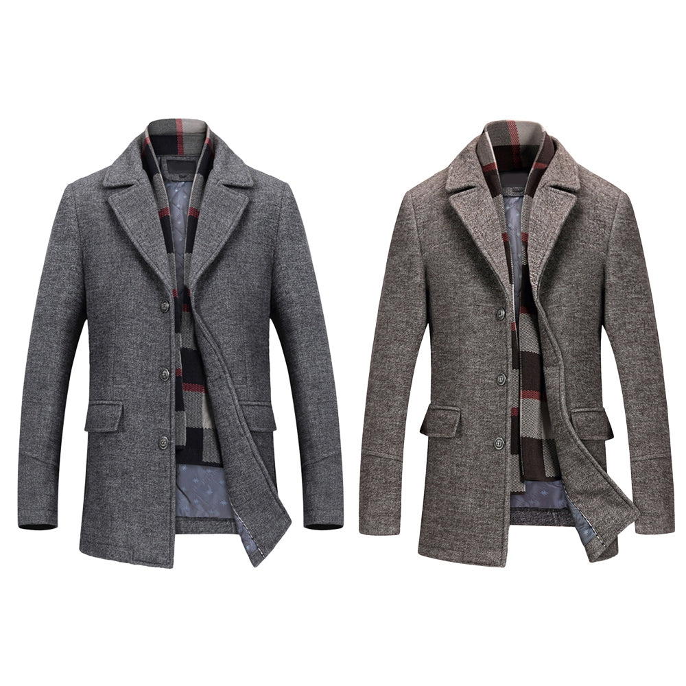 Men's Woolen Casual Windbreaker Coat with Scarf