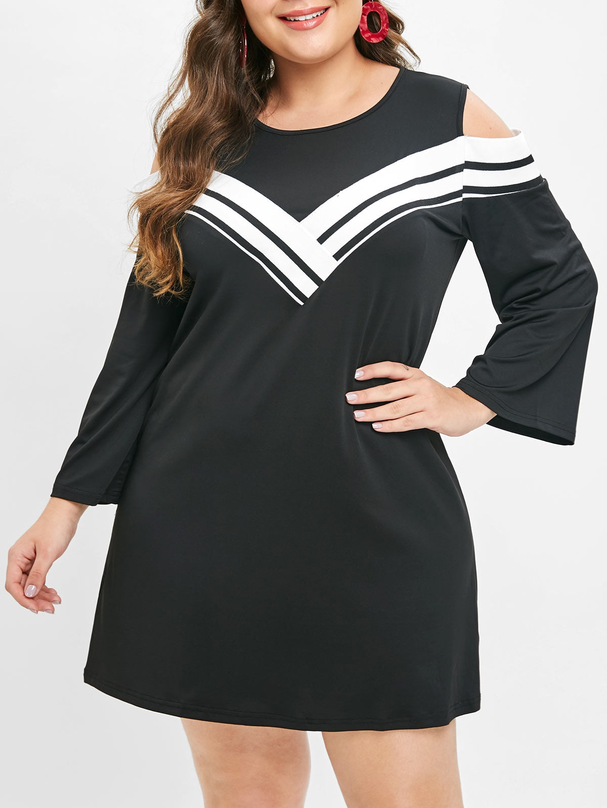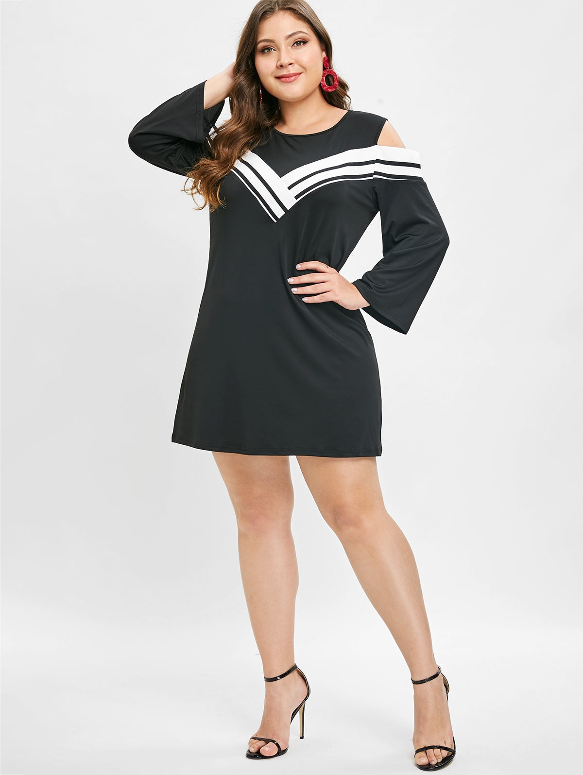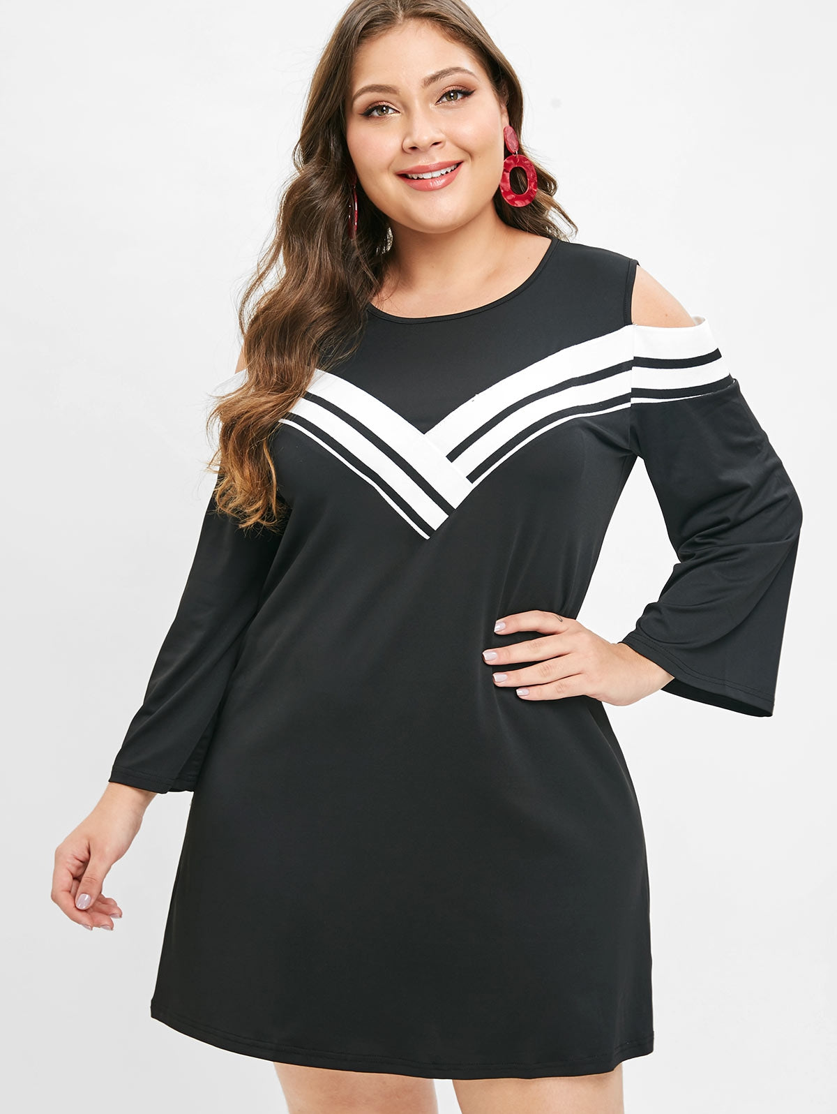 Plus Size Cold Shoulder Contrast Bodycon Dress