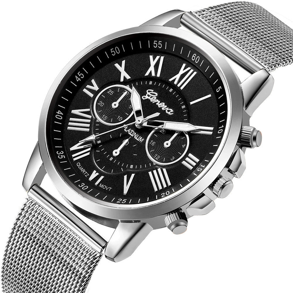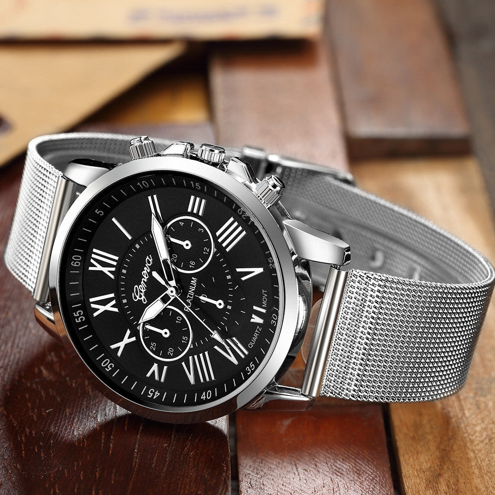 GENEVA Men Steel Mesh Belt Fashion Business Leisure Quartz Watch