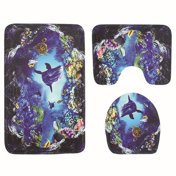 Ocean World Printed Toilet Mat Bathroom Anti-slip Carpet Set