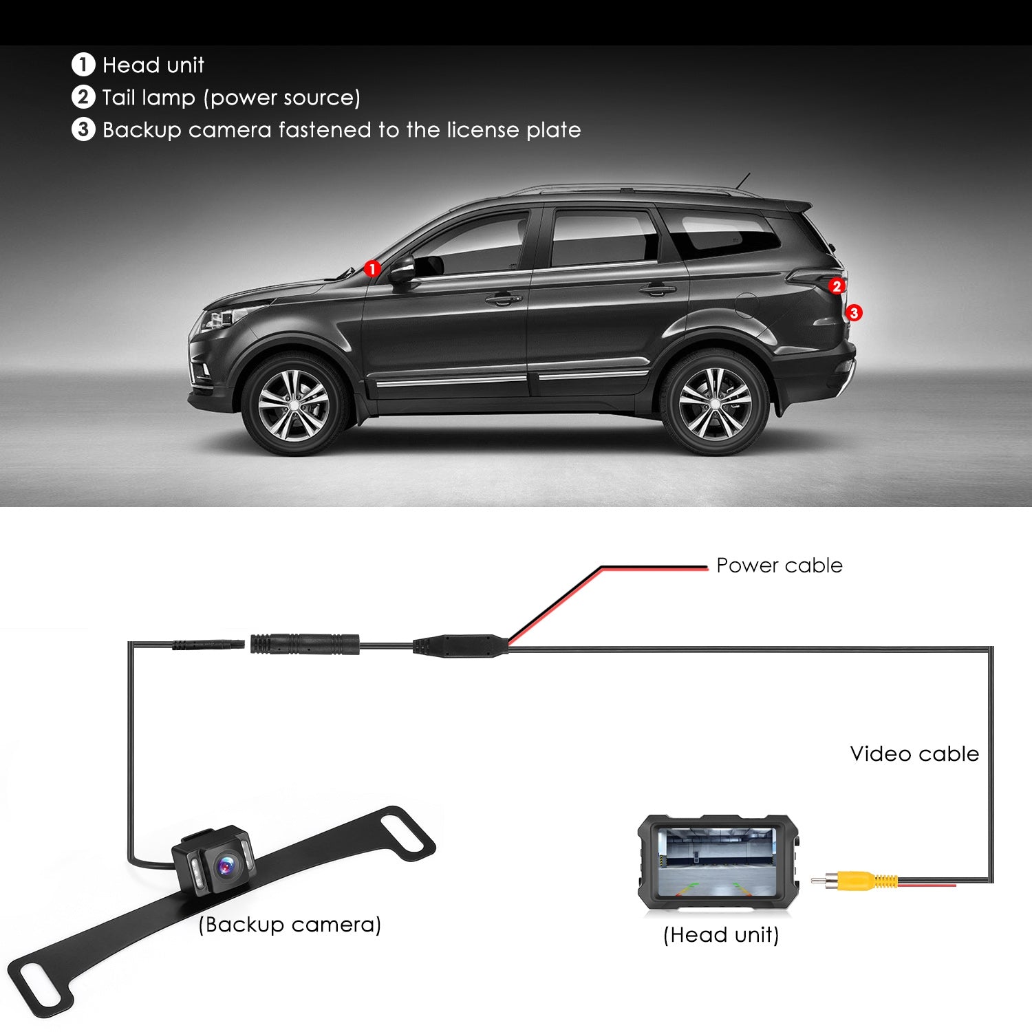Package Contents: 1 x Backup Camera, 1 x Video-and-power Cable