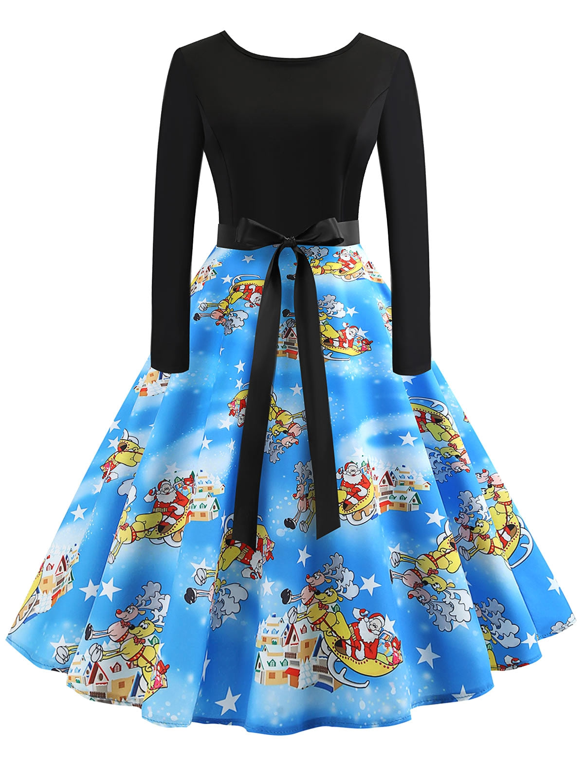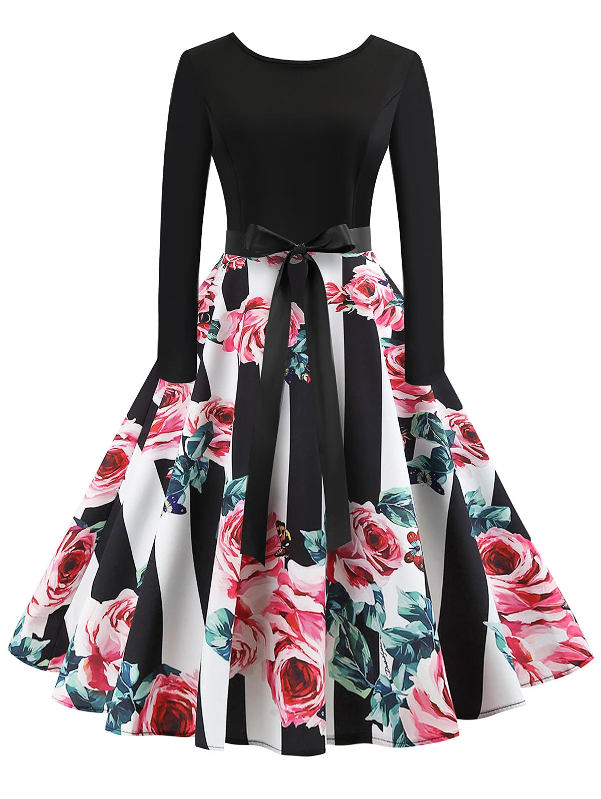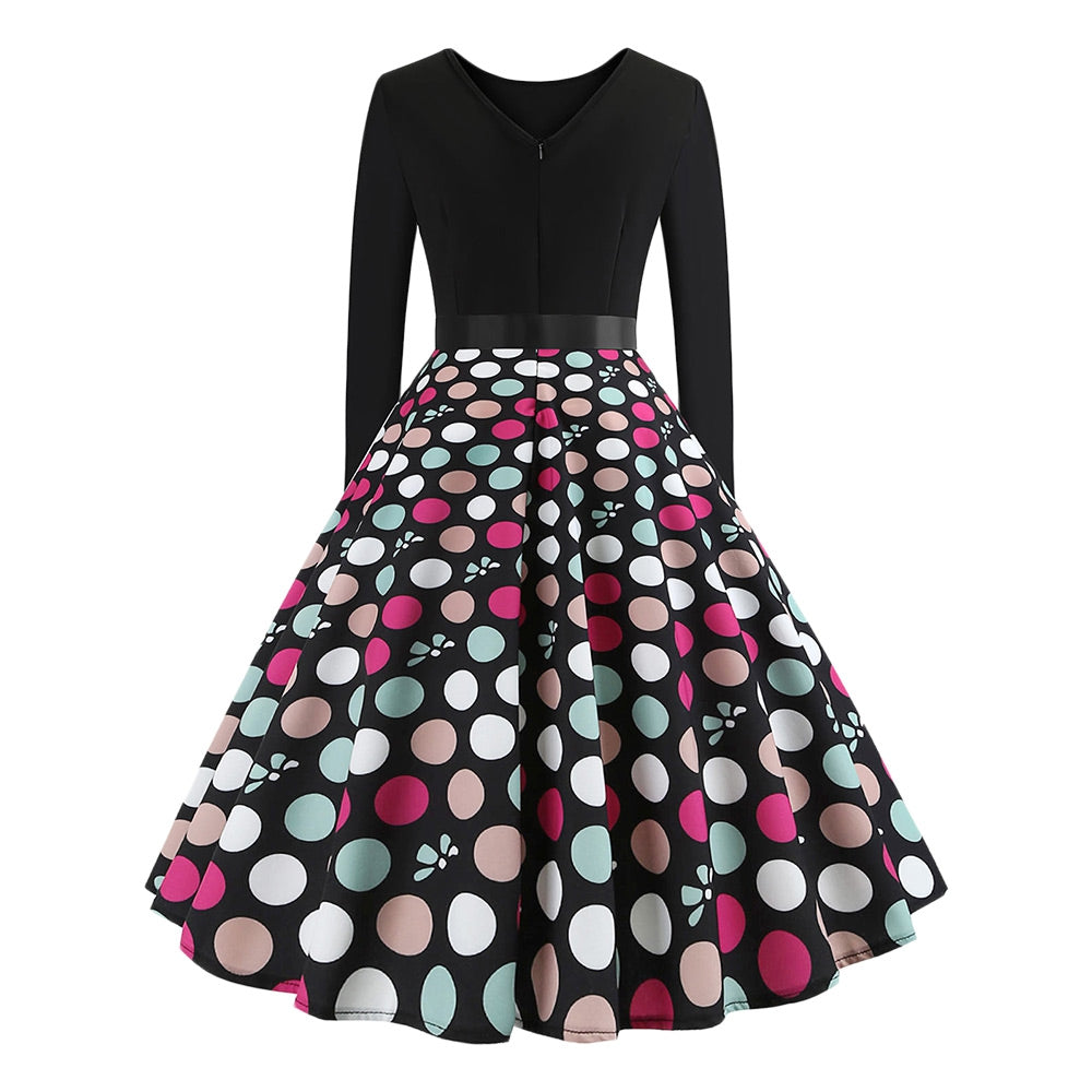 Vintage Long Sleeves Printed Pin Up Dress Women