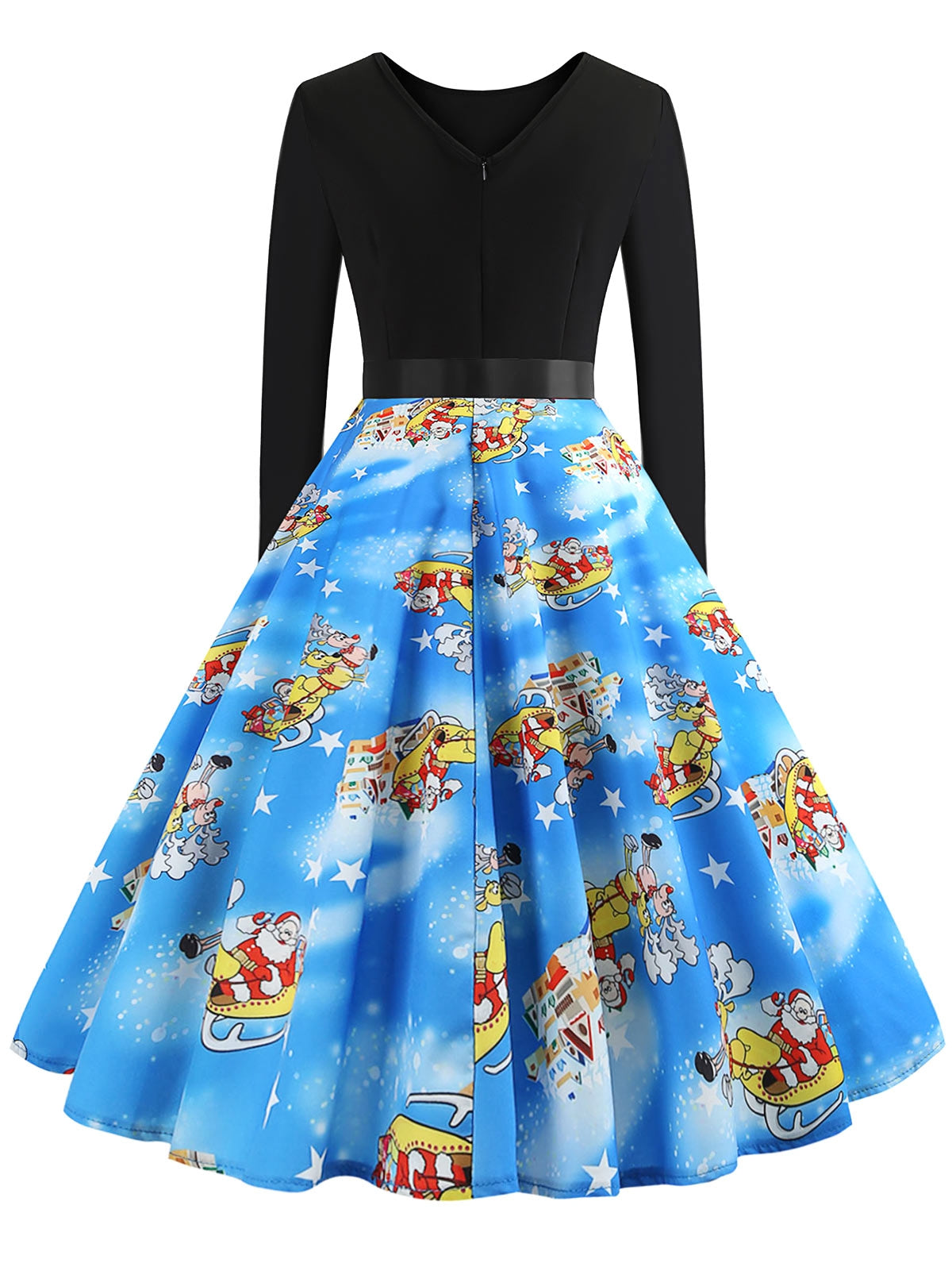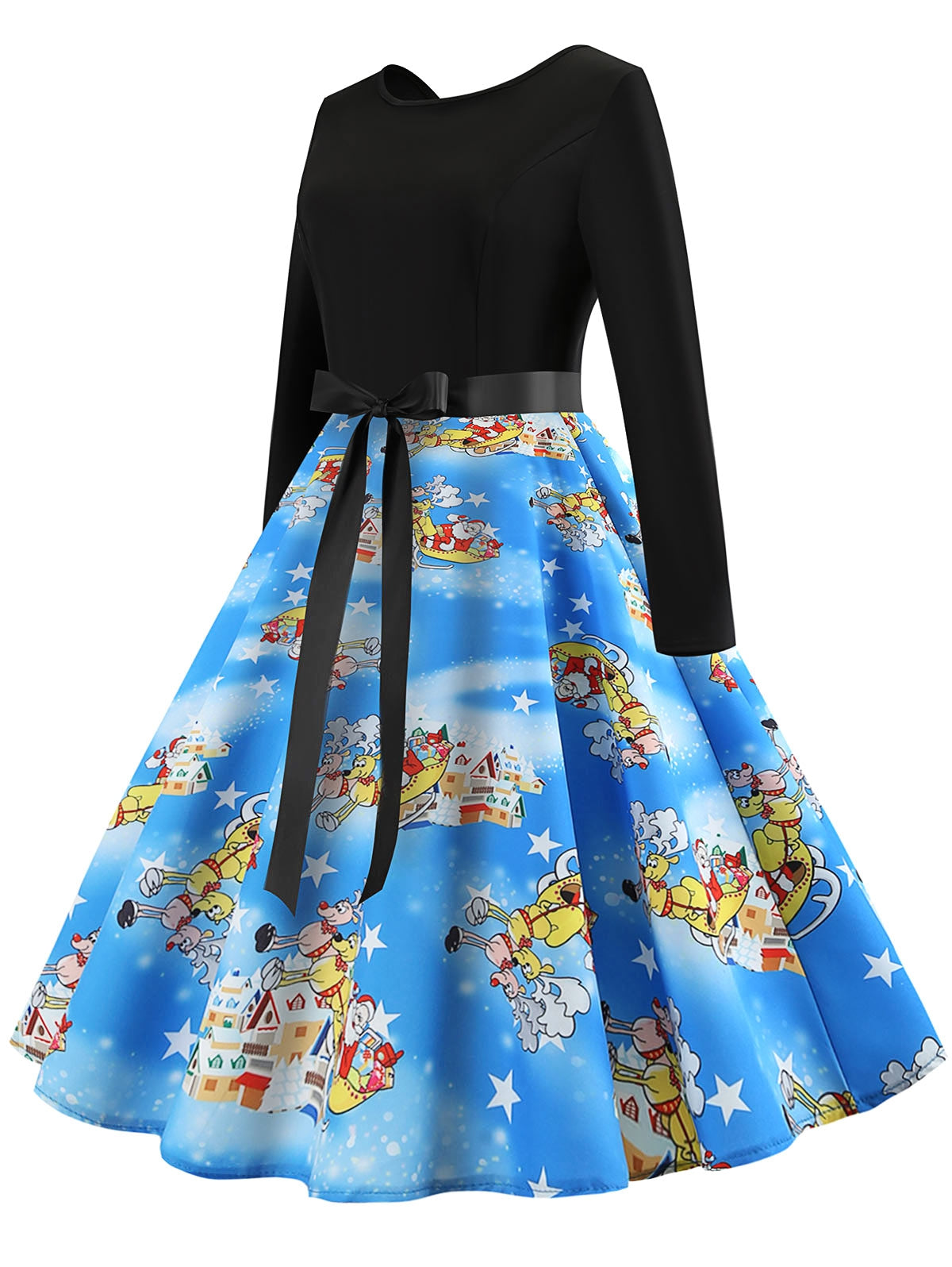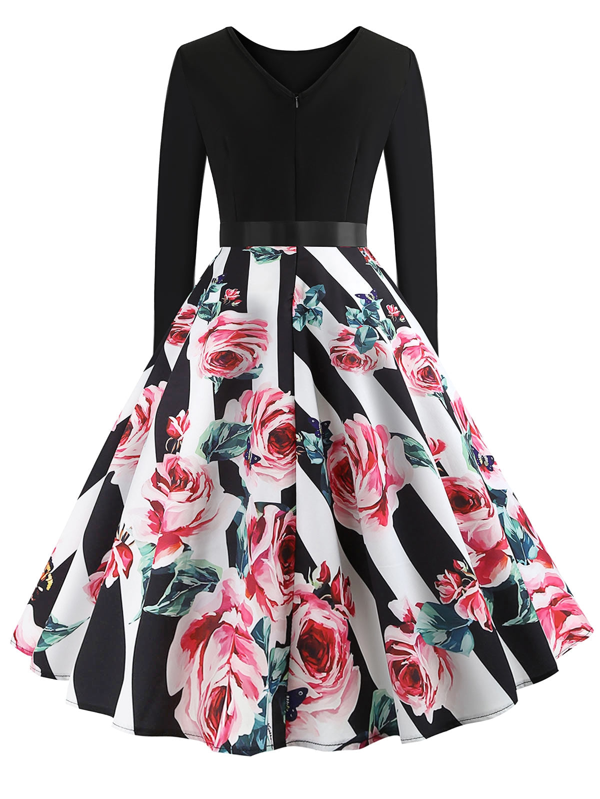 Vintage Long Sleeves Printed Pin Up Dress Women