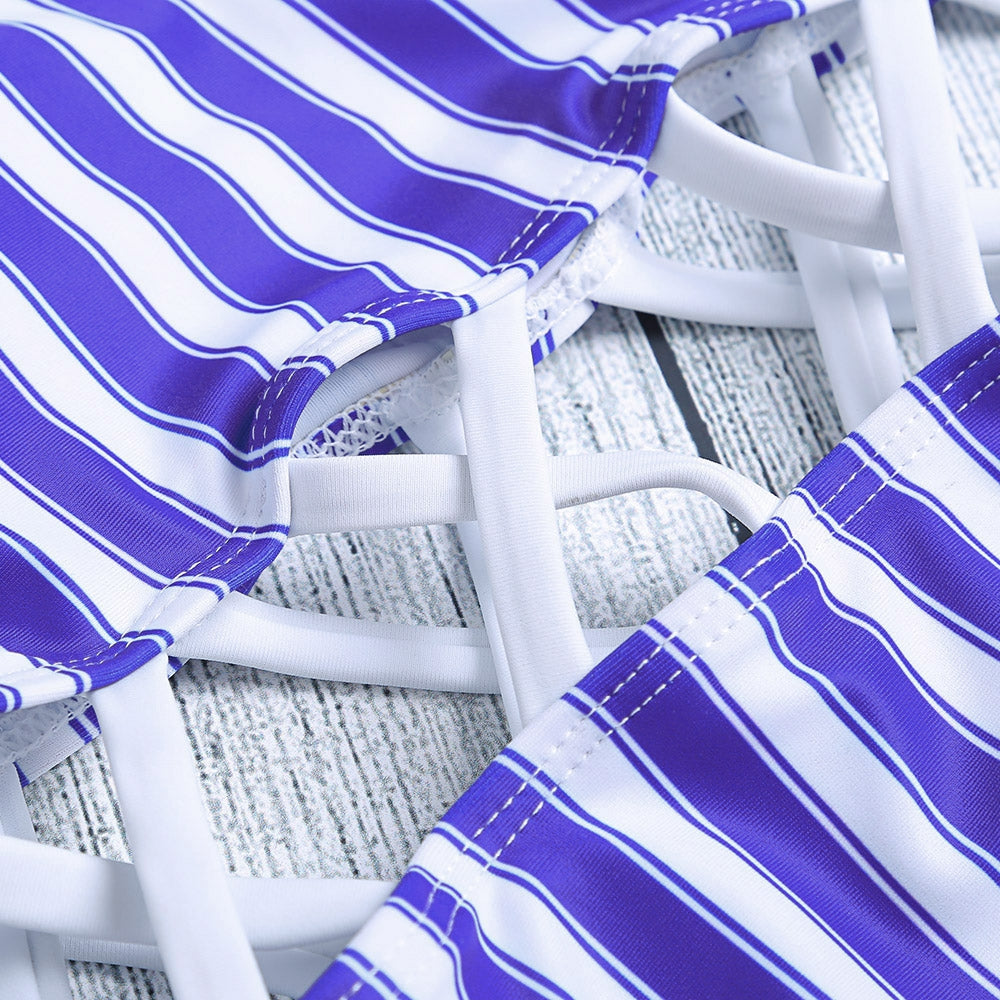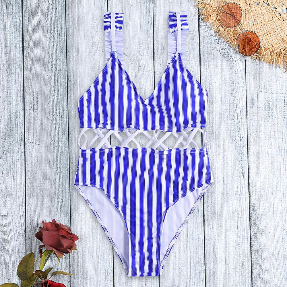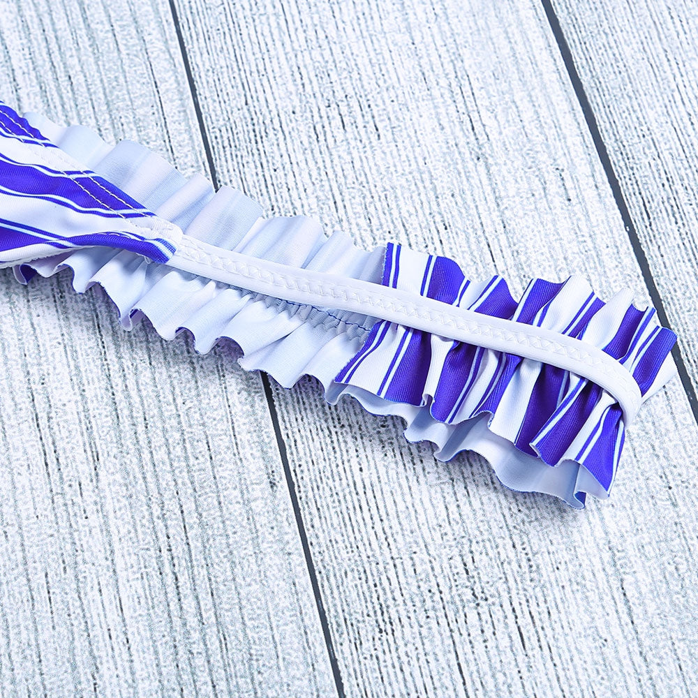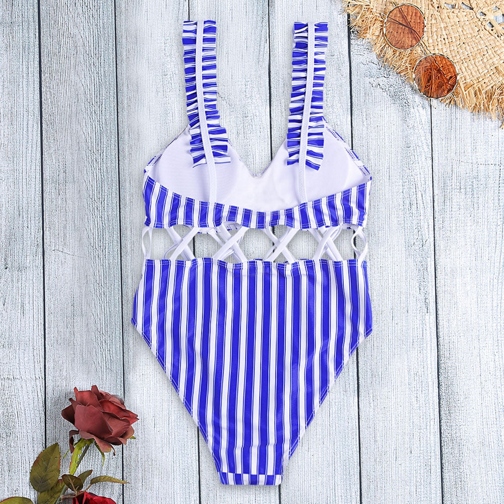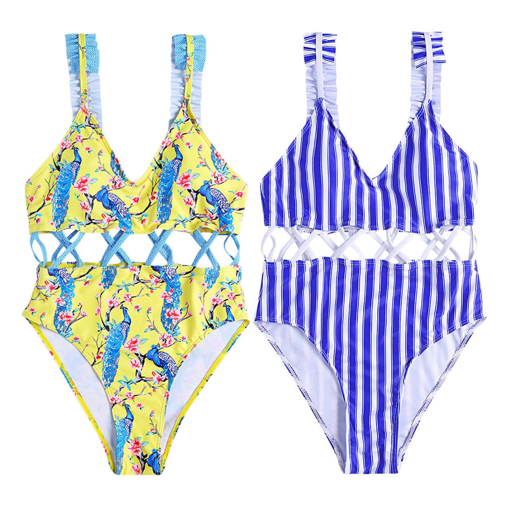 Spaghetti Strap Backless Padded Ruffle Print Women Swimsuit