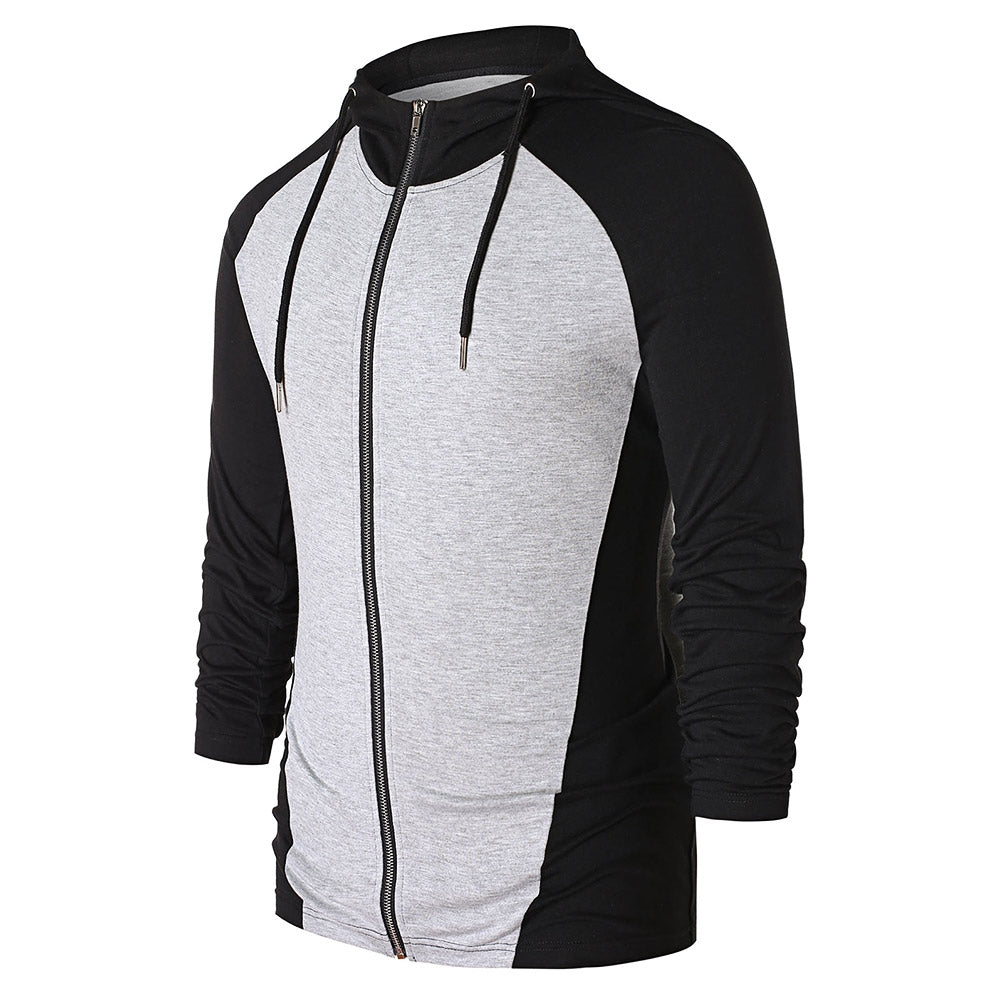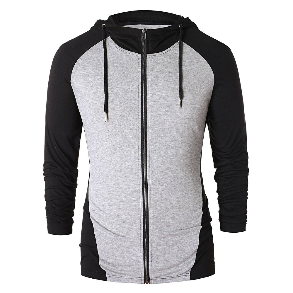 Raglan Sleeve Drawstring Color Blocking Hoodie
