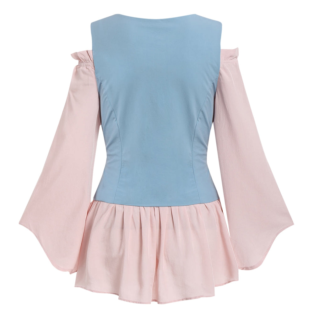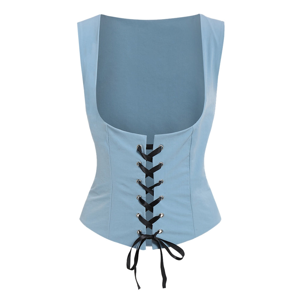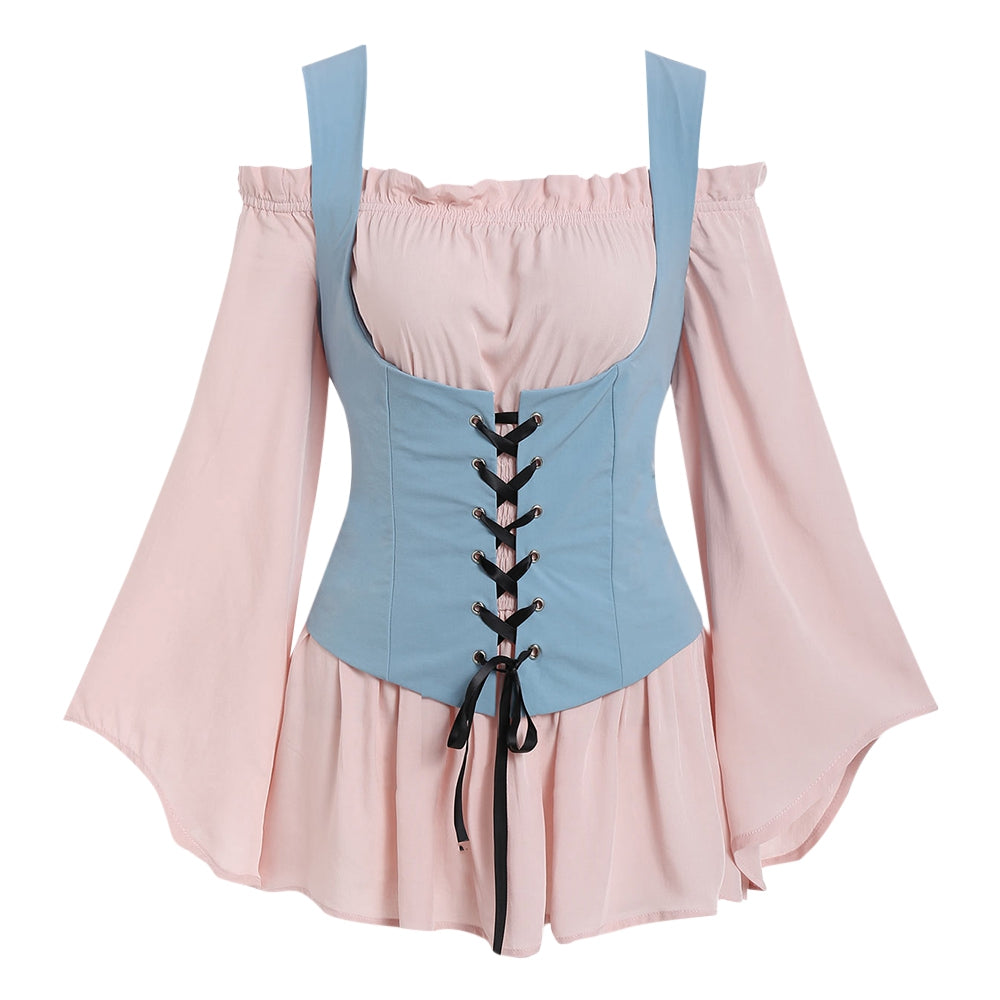 Off Shoulder Blouse and Lace-up Waistcoat Set