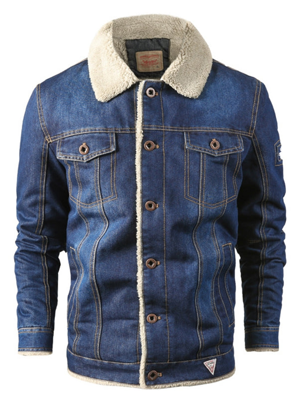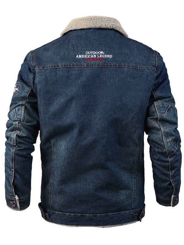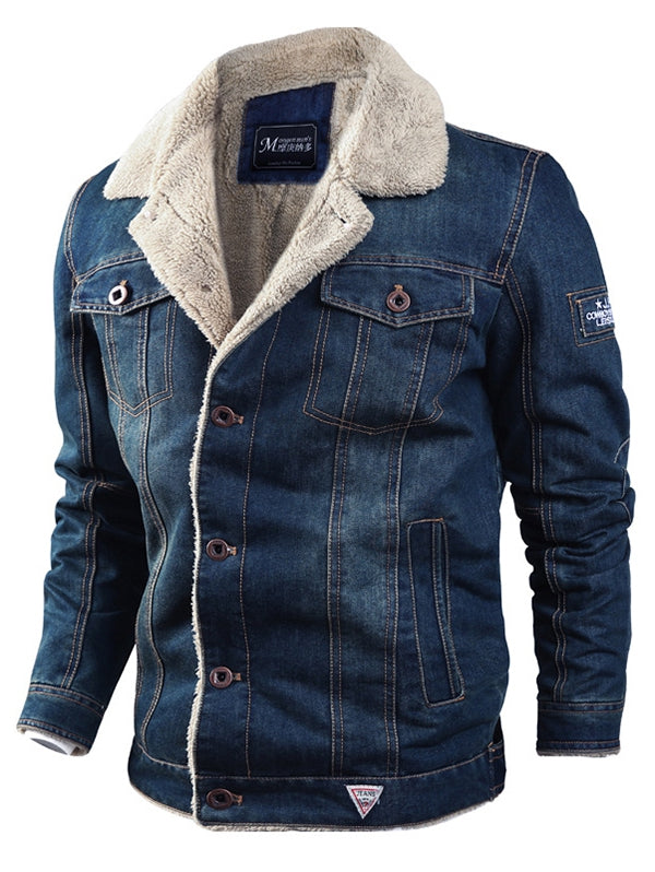 Men's Jacket Casual Winter Plus Velvet Thick Loose Lapel Denim