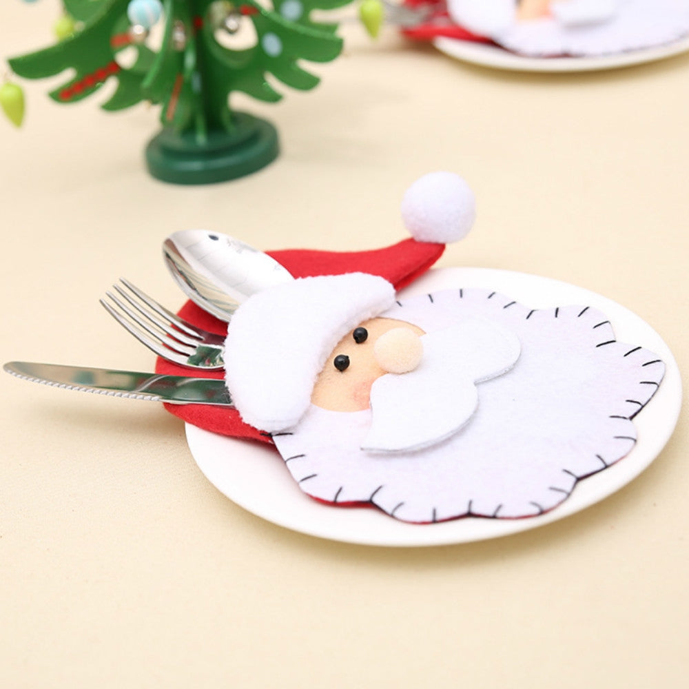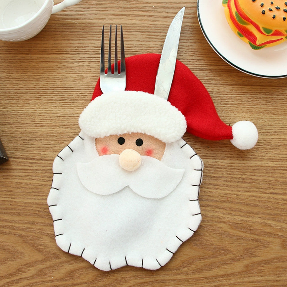 Santa Claus Cutlery Holder Bags Fork Spoon Pockets Decor