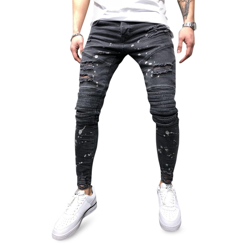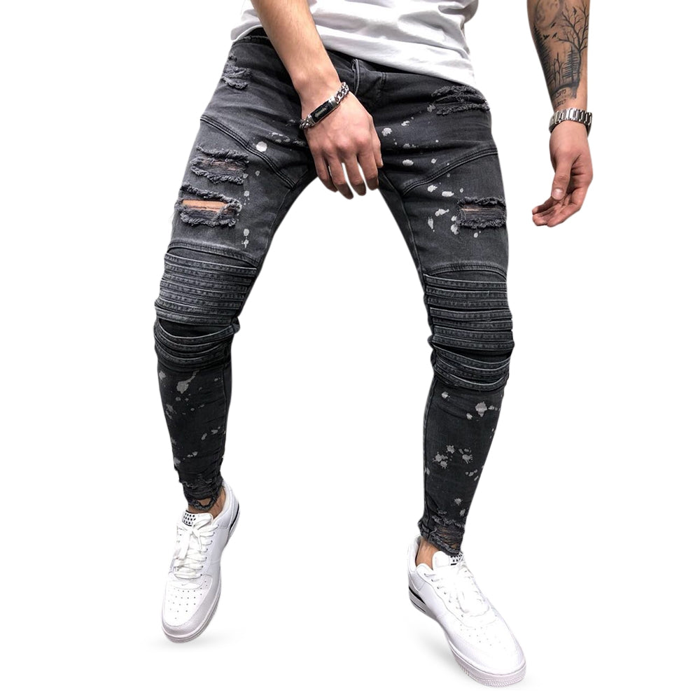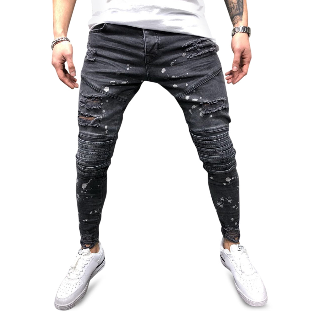 Men Stylish Ripped Jeans Pants Skinny Slim Fit Frayed Denim Trousers
