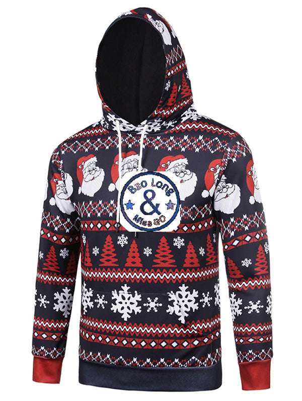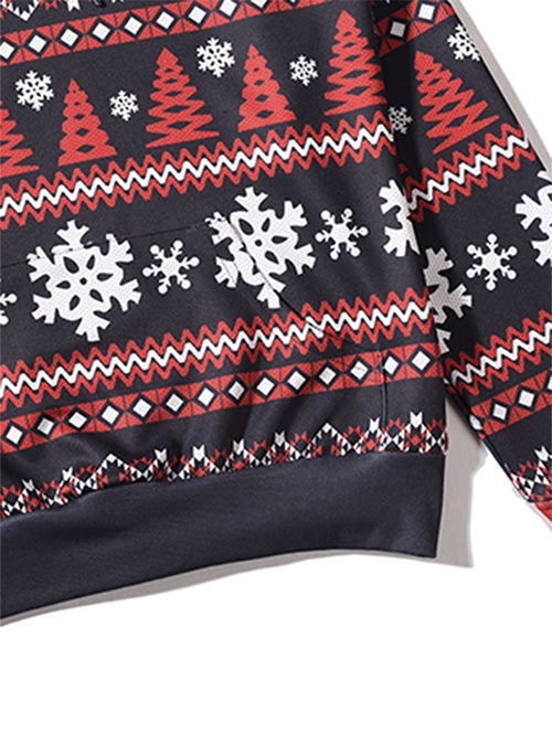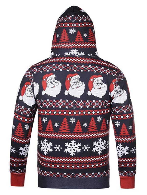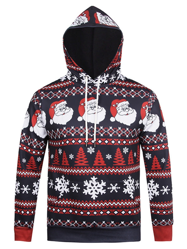 Santa Claus Head Snowflake Christmas Tree Print Hoodie