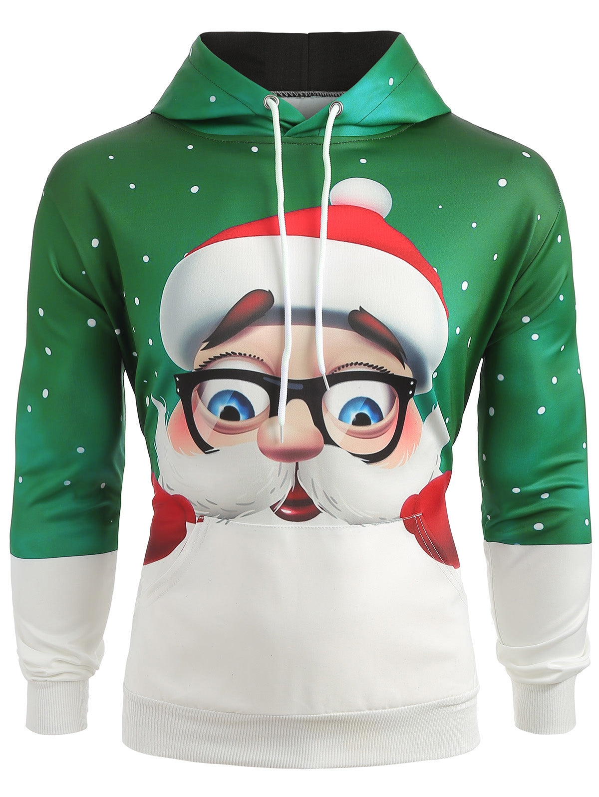 3D Cartoon Santa Claus Print Pullover Hoodie