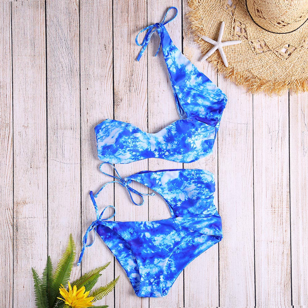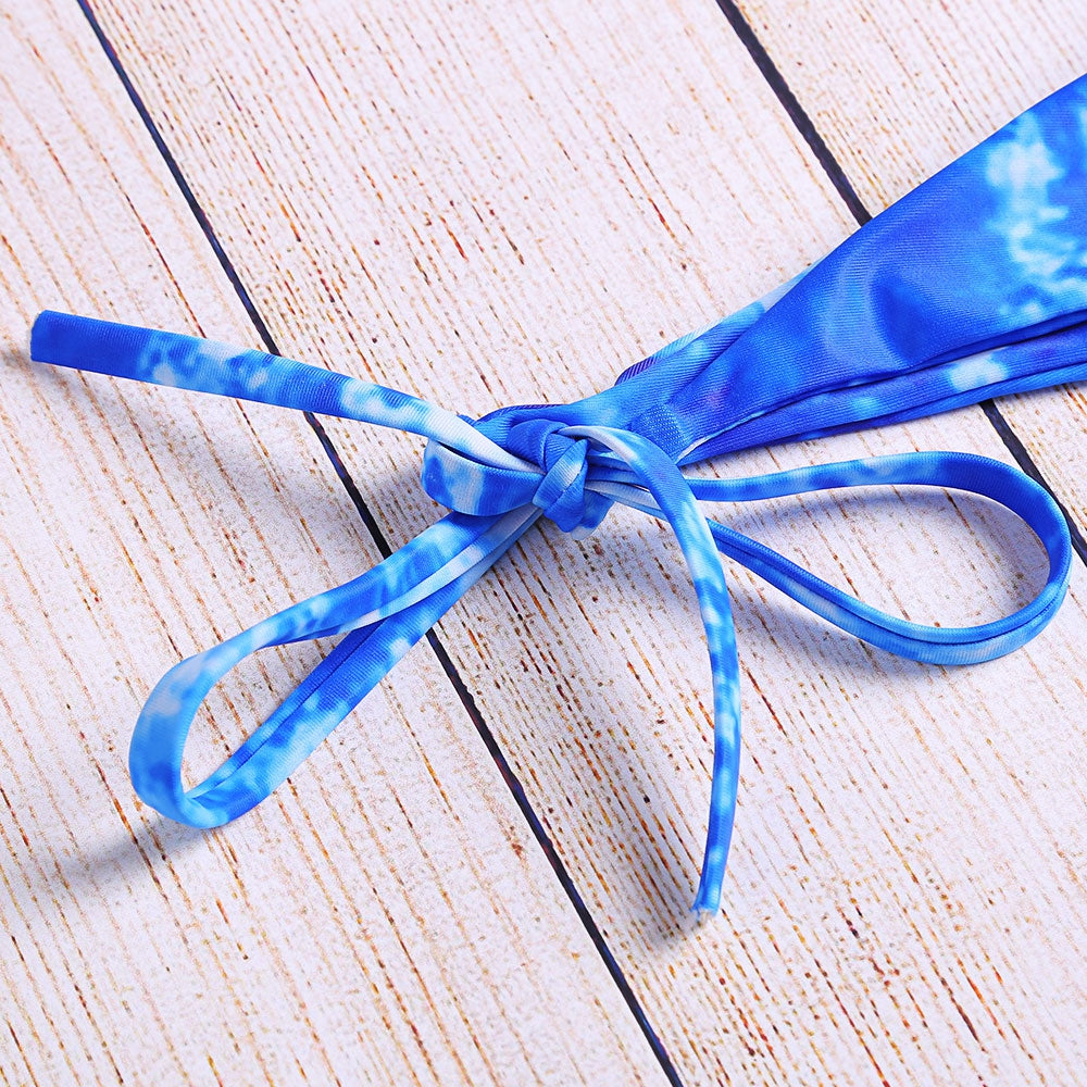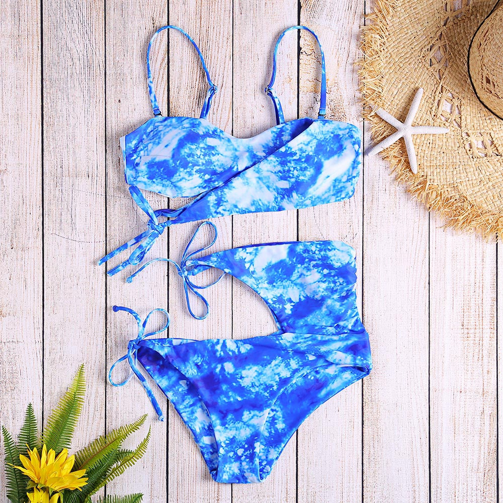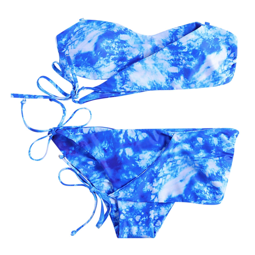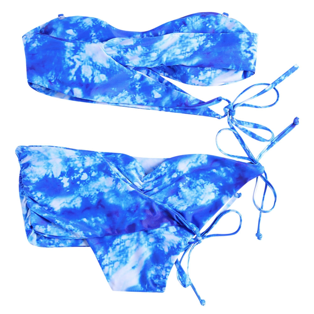 Spaghetti Strap Strapless Backless Padded Tie-dyed Print Low Waist Women Bikini Set