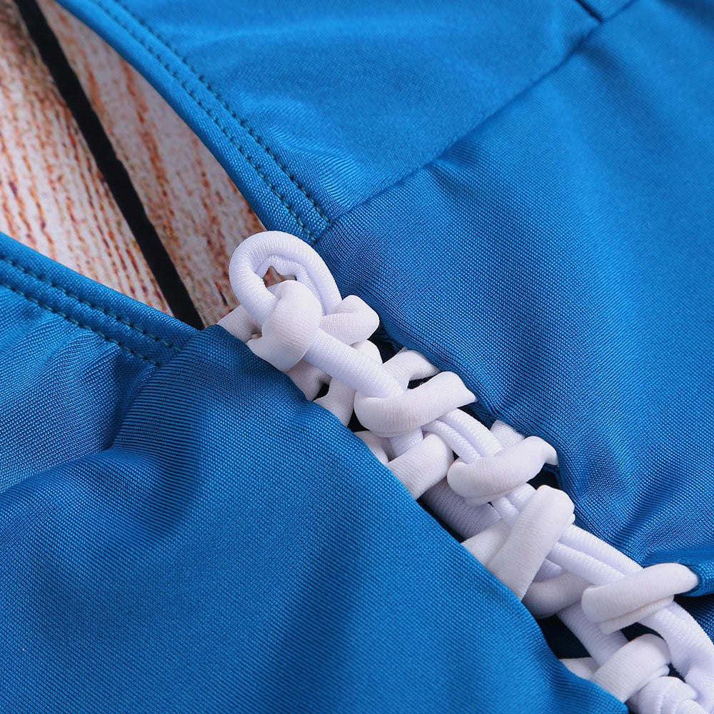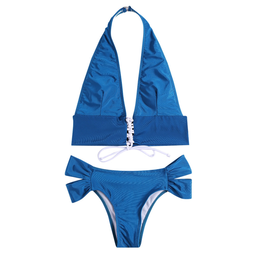 Solid Color Sexy Women Lace Up Swimwear Halter Bikini Set Bathing Suit