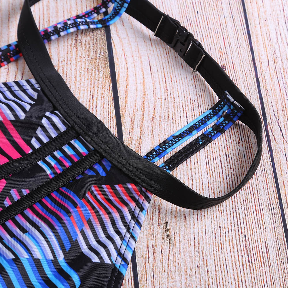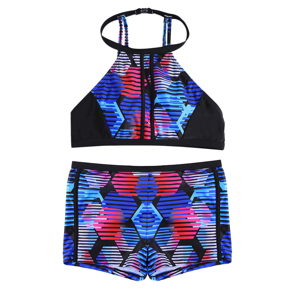 Women Sports Striped Round Collar Two-piece Swimwear Bikini Set