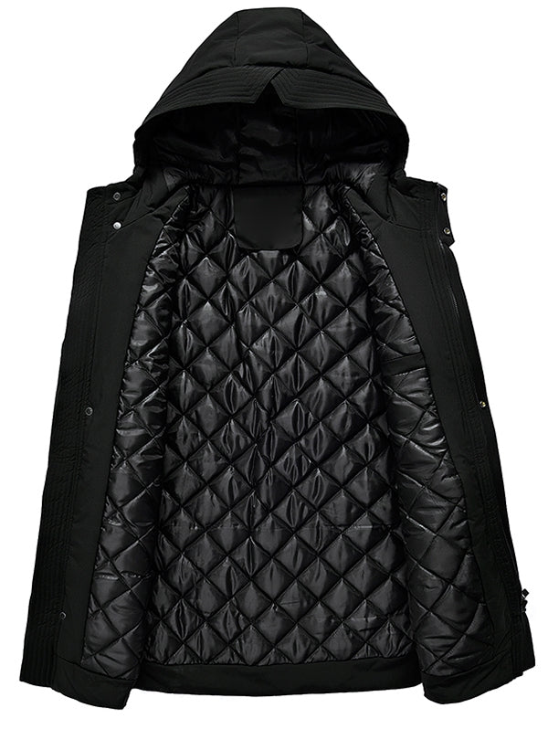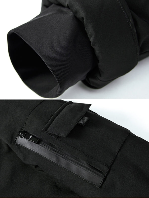 Zip Spliced 3D Pocket Embellish Hooded Padded Coat
