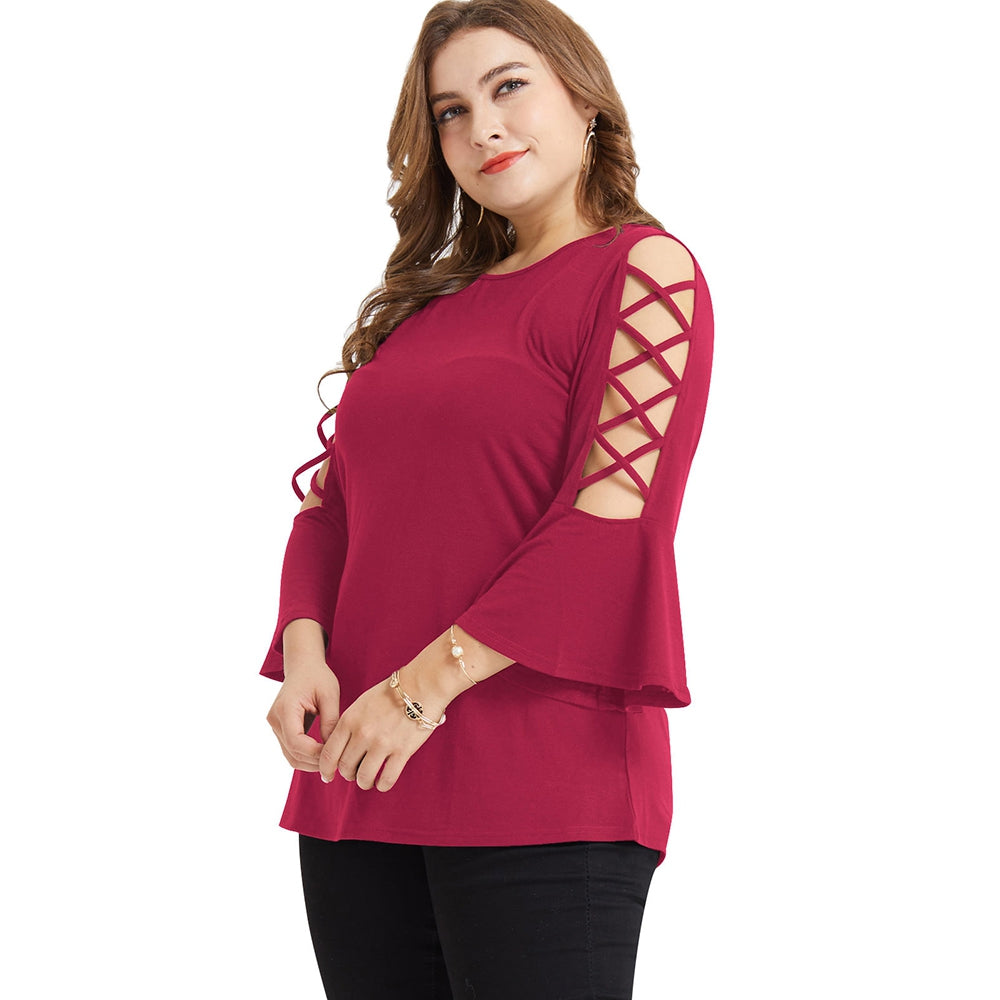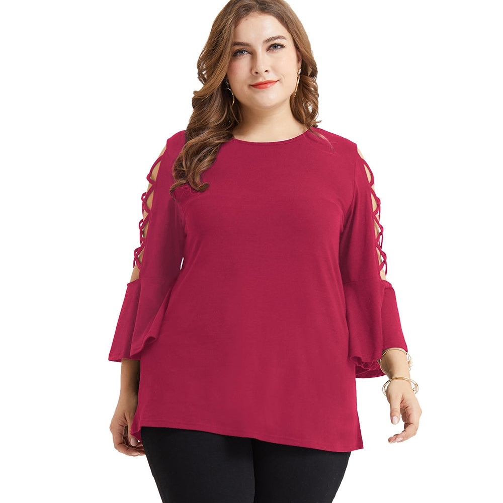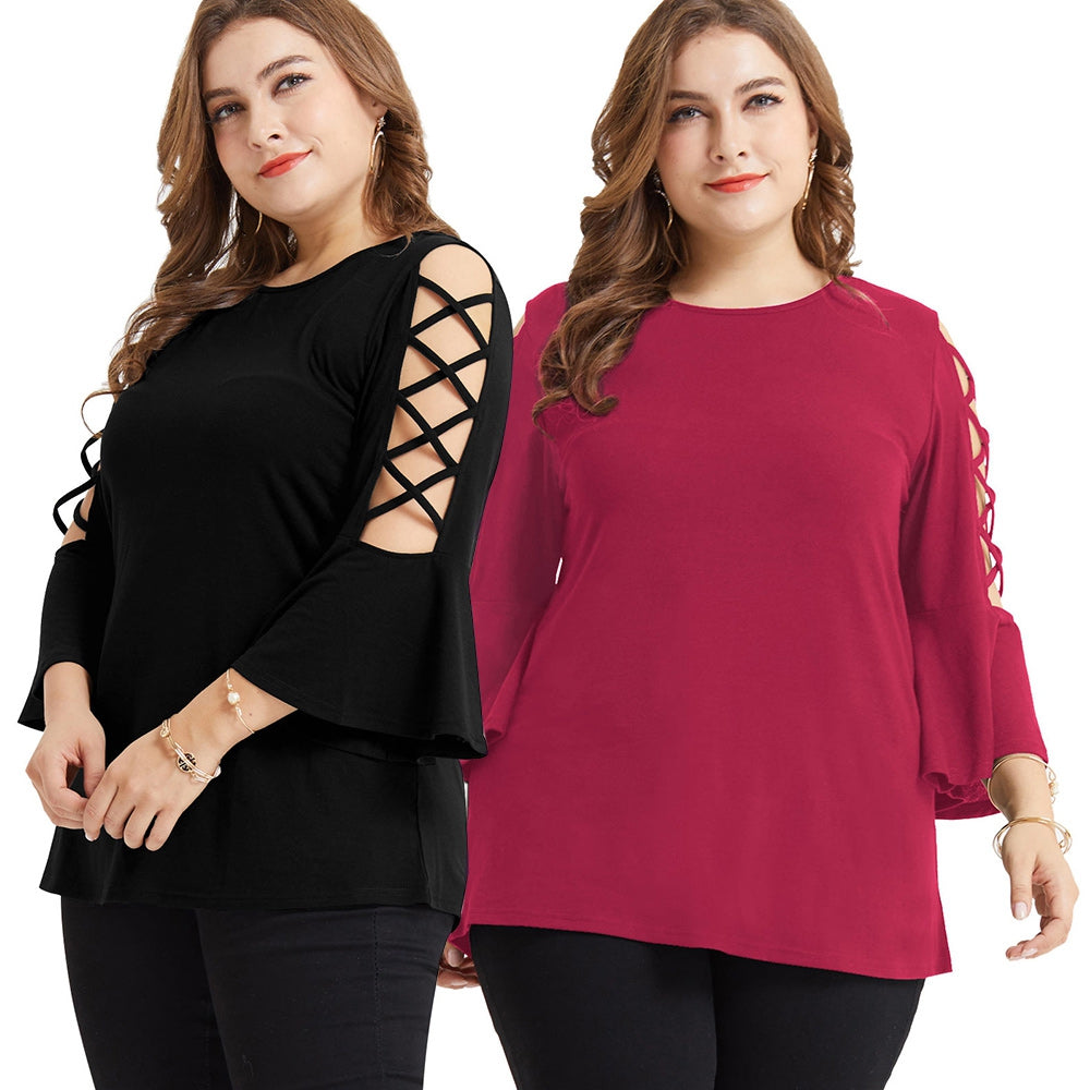 Plus Size Special Criss Cross Bell Sleeve T-shirt