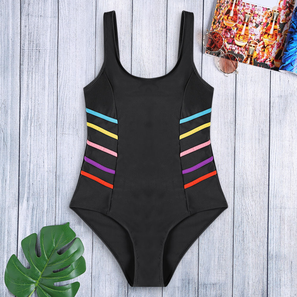 Sexy Colorful Striped Conjoined Swimsuit Women Beachwear Swimwear Suit
