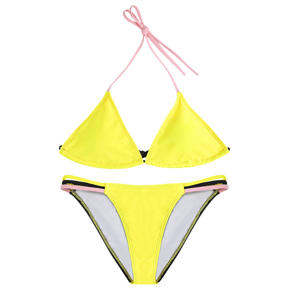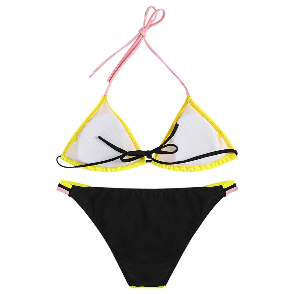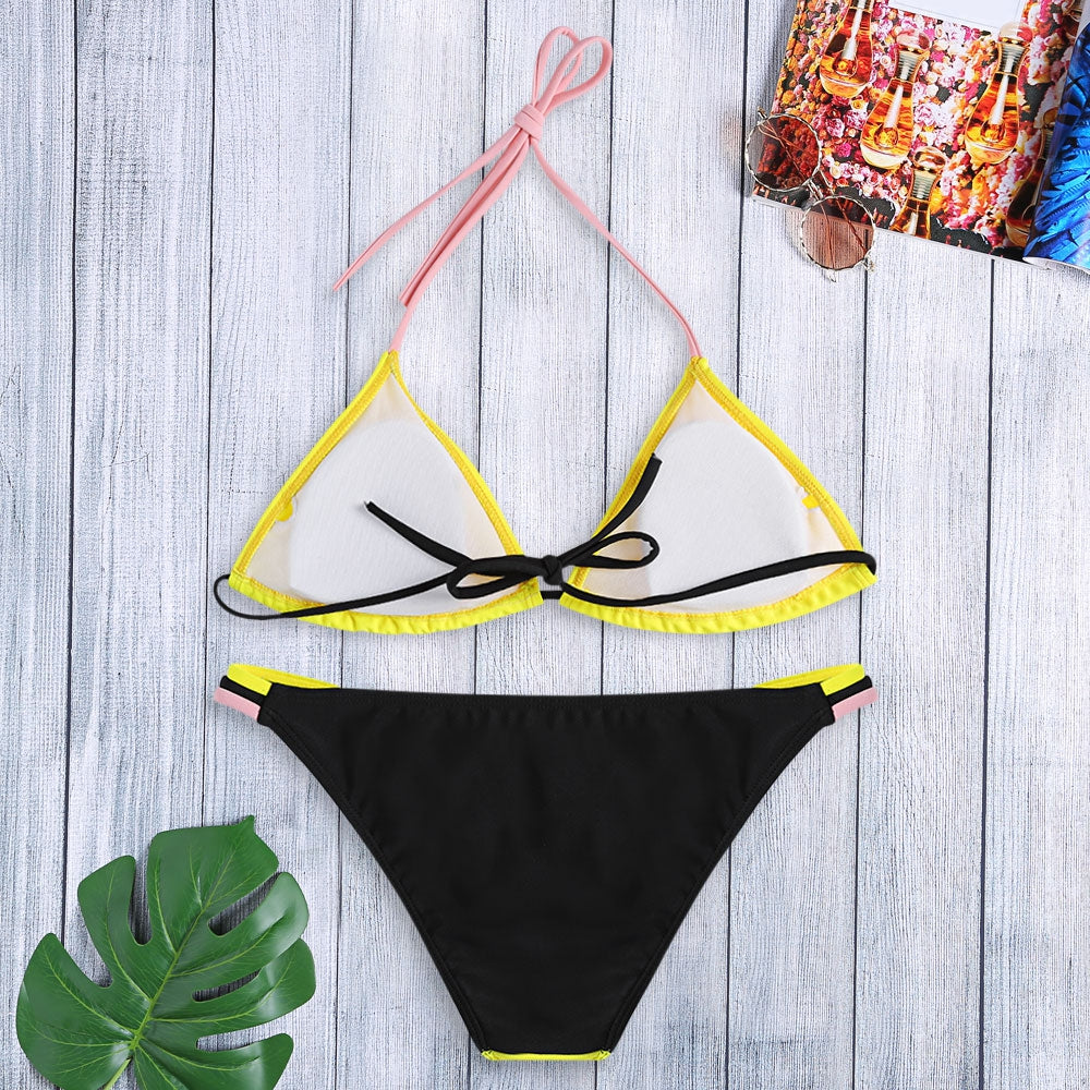 Women Sexy Color Blocking Strap Two-piece Swimwear Bikini Set