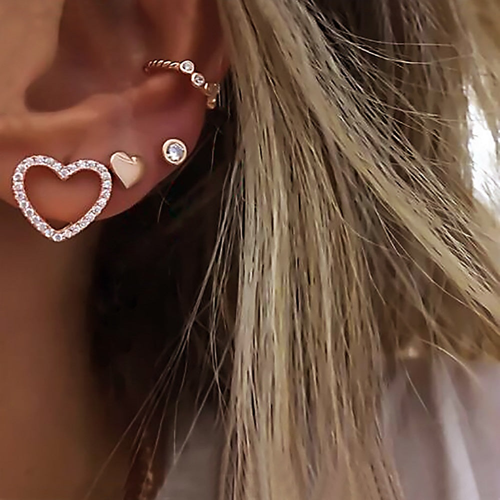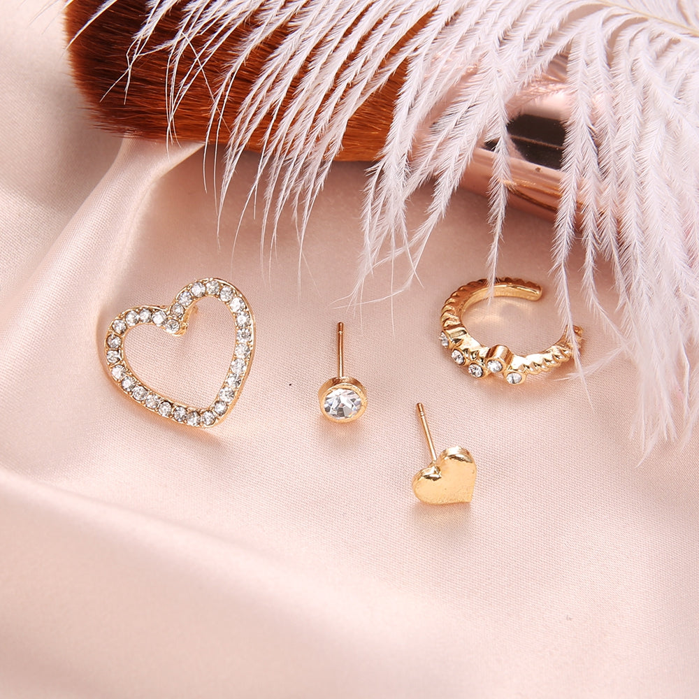 4 Pcs/Set Simple Heart Geometric Crystal for Women Gold Fashion Bohemian Earring