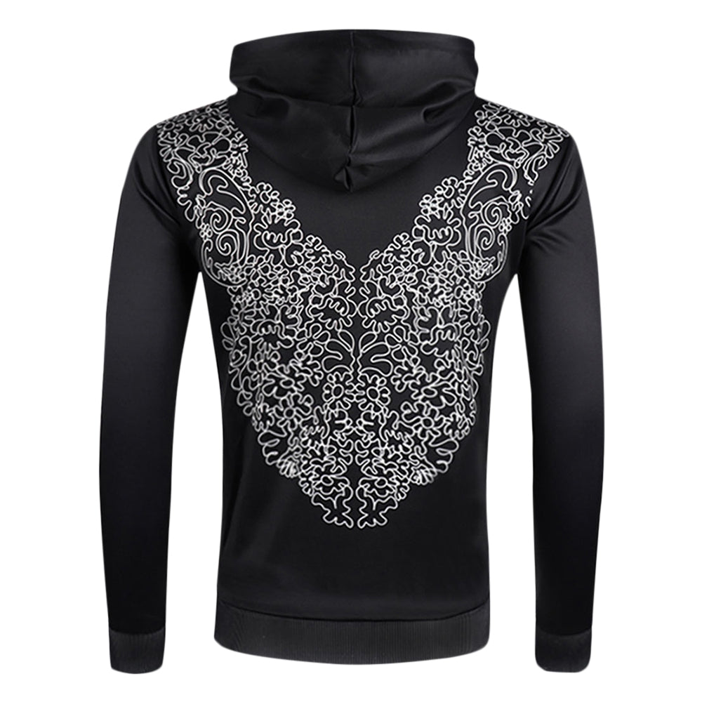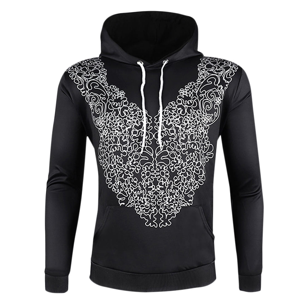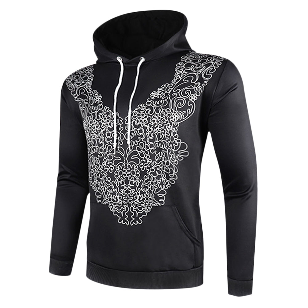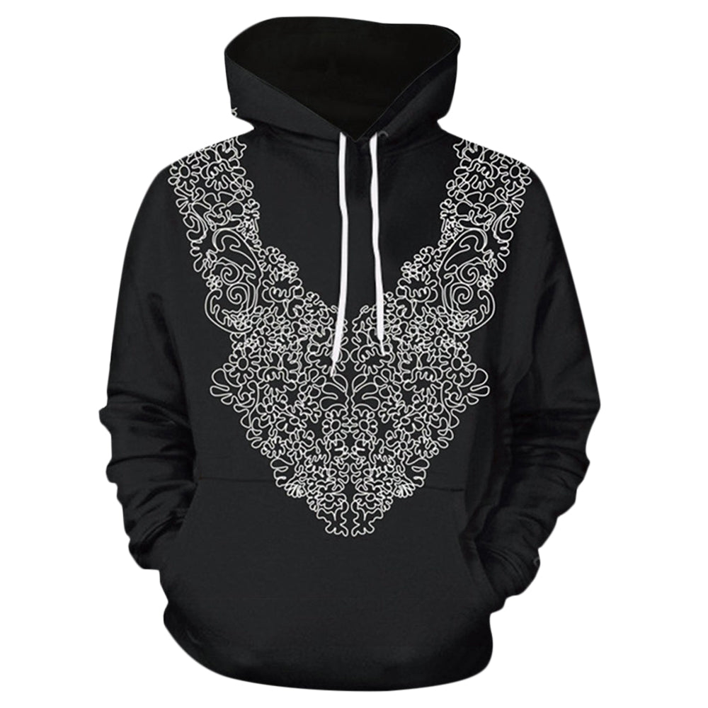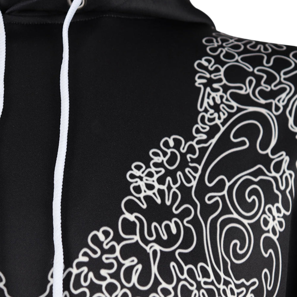 Geometric Pattern Pullover Drawstring Hoodie