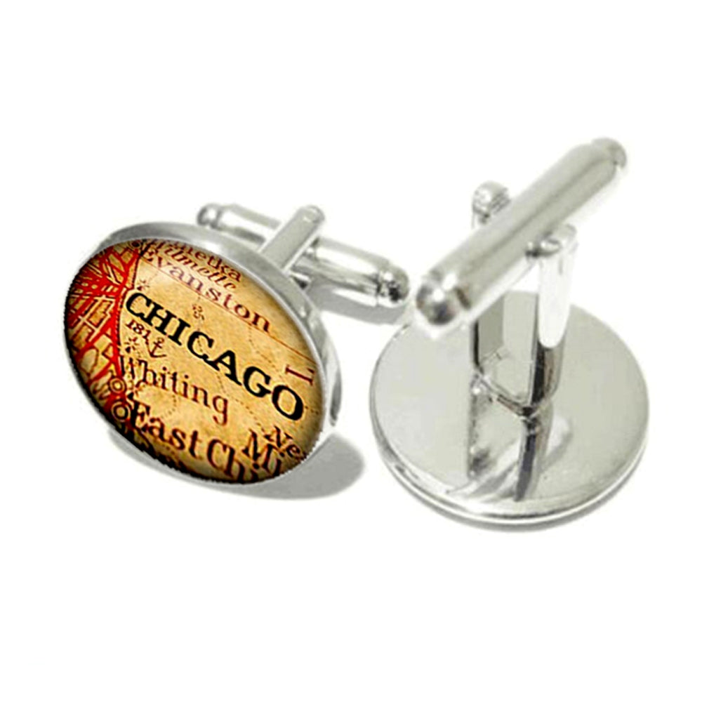 Alloy Glass Material/ Printing Process Old Map Cufflinks for Men
